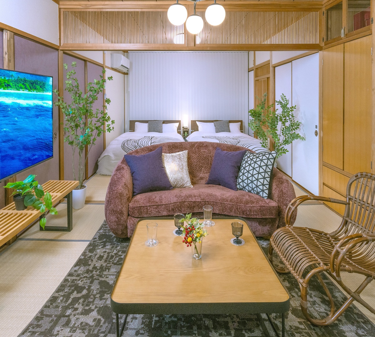 Benvenuti all'ENSO, un rifugio di ispirazione zen a soli 4 minuti dal Giardino Ritsurin. Il tuo host locale di lunga data condividerà consigli turistici, ristoranti e un caloroso supporto. La camera si trova al 2° piano, garantendo privacy e tranquillità. Ottima posizione: 5 minuti a piedi dalla stazione e dall'autobus per l'aeroporto, 10 minuti dal porto di Takamatsu, 15 minuti a piedi dal centro. Nelle vicinanze si trovano negozi di udon, caffè, izakaya, panetterie e un supermercato aperto 24 ore su 24. I punti salienti includono due teatri insonorizzati (100/90 pollici) e una stanza tatami con luce naturale soffusa.