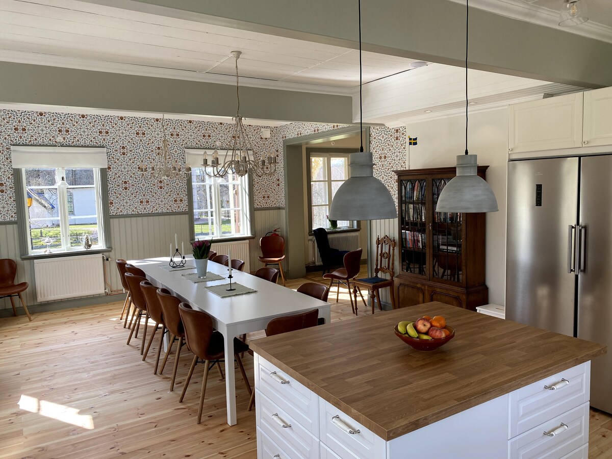 Bellissima casa 🏡 sul fiume Emån, Alseda. 🌅Scopri questa incredibile zona di laghi, foreste e fauna selvatica. Il fium passa proprio accanto alla casa, e il lago con una piccola spiaggia si trova a pochi minuti a piedi, dove è possibile nuotare 🏊♀️ Avrai a disposizione l'intera casa, la dependance separata e un enorme giardino (3.500 m²) da goderti con la tua famiglia. La casa principale è completamente attrezzata, mentre nella dependance sono presenti una sauna e una palestra. La doccia e il bagno si trovano nella casa principale
