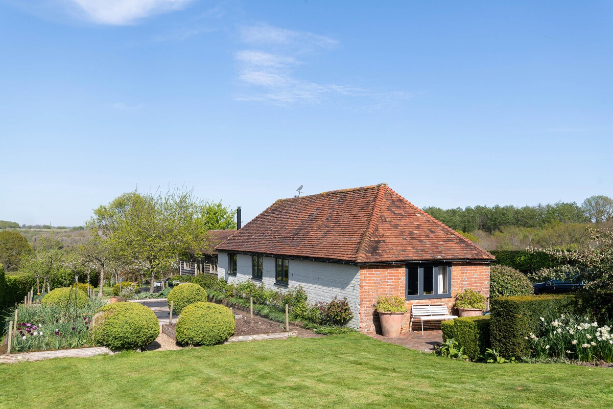 Oliveswood barn a self contained contemporary Architect designed Barn is a luxurious couples retreat, a detached structure surrounded by beautiful AONB countryside with outstanding views. Dog friendly. Close to many famous houses and gardens ,Sissinghurst Castle, Great Dixter, Chartwell, Batemans and Scotney Castle. The Spa town of Royal Tunbridge Wells is a 20 minute drive away. Wadhurst our nearest village has 2 small supermarkets, great butcher, deli, 2 pubs and takeaways.