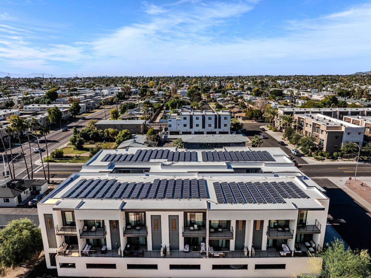 - Passeggiata nel centro storico di Scottsdale - Letti king size Beds - Smart TV da 55 pollici con tutte le app di streaming. - Cucina completa Una nuovissima esperienza lussuosa e moderna in questo appartamento con due camere da letto dal design professionale e curato che ti farà ricordare un ottimo soggiorno. Questa casa unica nel suo genere si trova a pochi passi dal centro storico di Scottsdale e da tutti gli ottimi ristoranti e bar che la città ha da offrire.