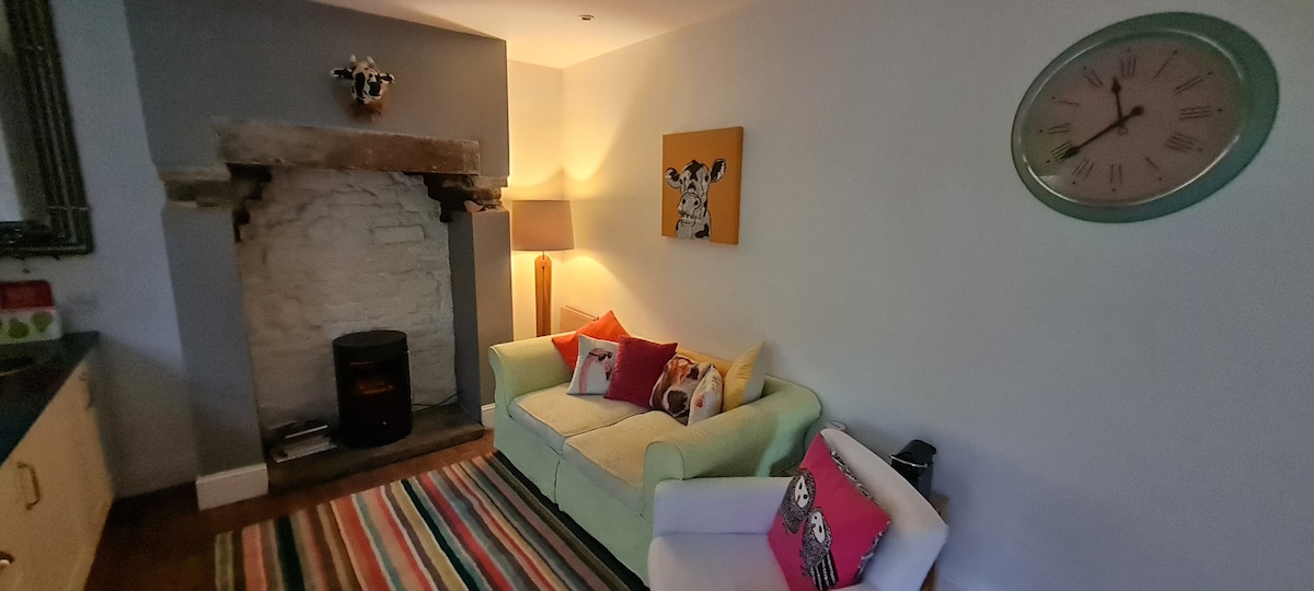 Splendido cottage di campagna, piccolo e accogliente, nel pittoresco villaggio di Delph, sulle colline di Sadddleworth, nel West Yorkshire. Il Dairy Cottage è nascosto e offre una vista sulle colline, ma si trova a 2 minuti a piedi dal grazioso centro del paese, attraversato da un fiume, e vicino ai servizi del paese, come bar, pub, negozi e così via. Splendida camera da letto con lussuoso letto matrimoniale alla francese, soggiorno/cucina con caminetto elettrico a legna, cucina attrezzata, lussuoso bagno con doccia (spazio semi-aperto, vedi foto), patio soleggiato.