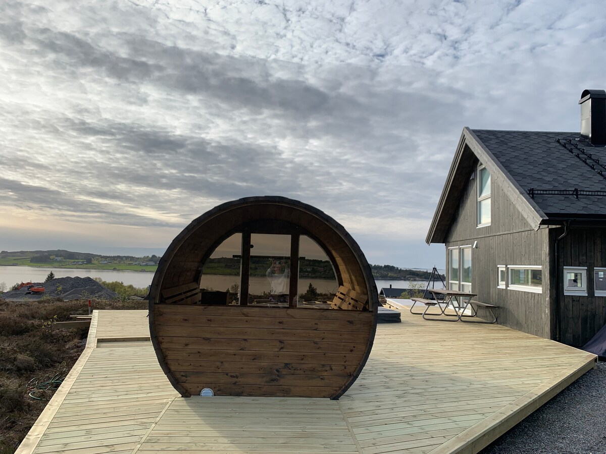 Ricarica le batterie in questo alloggio unico e tranquillo. Qui potrai goderti giornate rilassanti e movimentate in un ambiente raramente bello, con viste panoramiche sul mare aperto e ottime condizioni di sole. Si trova a pochi passi da Midsundtrappene e dal porto turistico con barca associata. Rørsethornet, UNA DELLE PIÙ LUNGHE SCALE CONTINUE IN PIETRA DEL MONDO, con i suoi 3292 gradini, è stata completata il 22/10/22. A soli 300 metri dalla baita. All'esterno della baita c'è un'elegante sauna a botte dove è possibile godere di un calore benefico😃