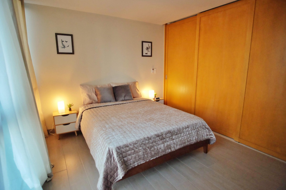 Con interni freschi e di ispirazione tropicale, questa unità 1BR in One Uptown Residences at Bonifacio Global City offre agli ospiti un soggiorno indimenticabile e rilassante. *Wi-Fi GRATUITO a 400 Mbps, Smart TV, TV via cavo, Netflix, Disney+ *Lavatrice e asciugatrice *Piscina *Cucina completamente attrezzata con piano cottura, frigorifero, forno a microonde, macchina per il caffè, tostapane, utensili da cucina e da pranzo. Situato proprio di fronte a Uptown Mall, The Palace, Mitsukoshi Mall e Grand Hyatt Hotel. A 7-10 minuti a piedi dal St. Luke's Medical Center e da High Street a BGC.