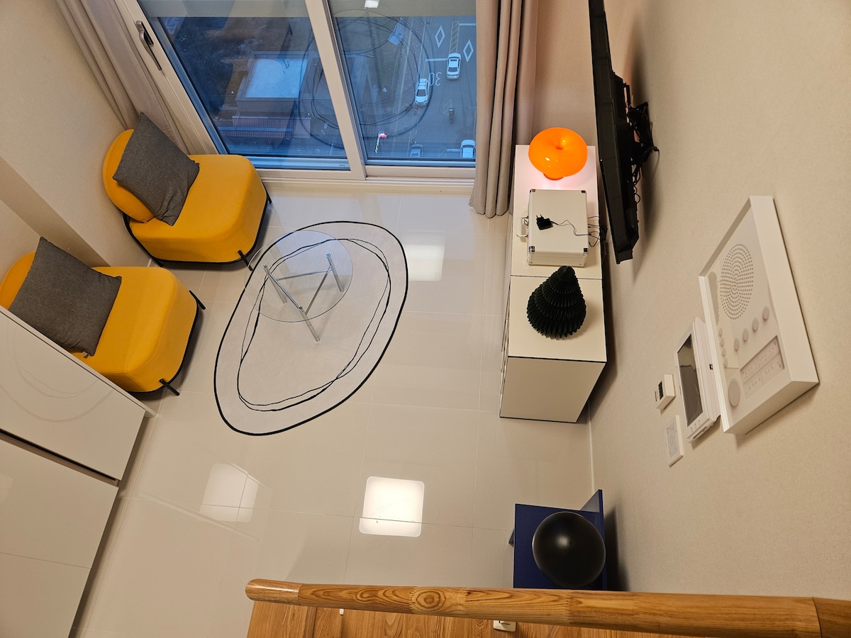 하늘도시 위치 ,구읍뱃터 차로 5분거리 -복층구조이며 침실은 2층에 더블침대가 구비되어 있습니다 -1층에는 편안히 휴식을 취하며 TV를 볼수있는 쇼파가 있고 바닦에는 포근한 러그가 깔려있습니다 -모던하고 깔끔한 인테리어로 야간 조명등이 구비되어 있습니다 -주방에는 전자레인지, 커피포트, 식기류가 구비 되어있습니다 (조미류는 구비되어 있지 않음) -기본 생수 2병, 페이스타올 6장이 제공됩니다 -일회용품과 샤워가운은 제공되지 않습니다 -OTT는 개인계정이 있어야 이용가능합니다
