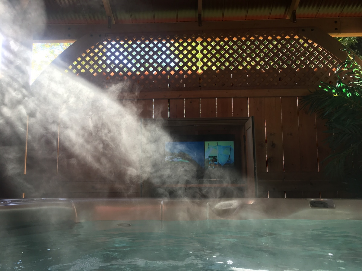 Benvenuti a Green Lakes Streamside Escape, a solo 1 minuto dal Green Lakes State Park. Questo rifugio con 3 camere da letto e 2 bagni può ospitare 6 persone e unisce comfort e benessere. Rilassati nella sauna privata, immergiti nella vasca idromassaggio o rinfrescati nel ruscello della proprietà. La casa offre una zona giorno open space, una cucina completa e camere da letto accoglienti. Perfetto per famiglie, coppie o amici in cerca di natura, avventura e relax in un'unica vacanza lungo il fiume.