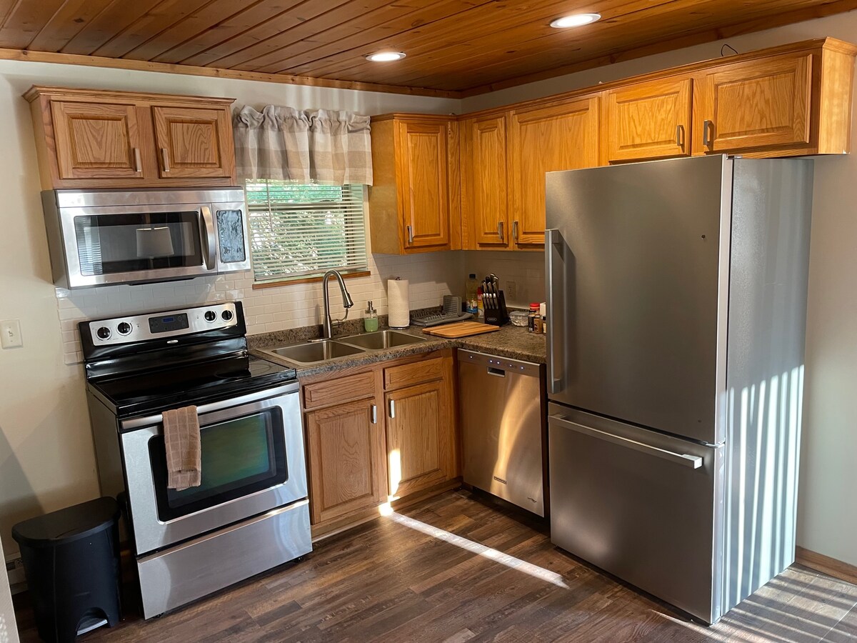 This cabin offers a perfect sense of tranquility, where you feel like nature and wildlife are your only neighbors. Forget your worries in this spacious and beautiful space. It has the feel of being alone on the lake, very secluded at the end of Wawaushnosh Drive. Rainey Reserve is just at the end of the road, and Smith Creek is just around the corner, a beautiful serene place to kayak. The kitchen is fully furnished.