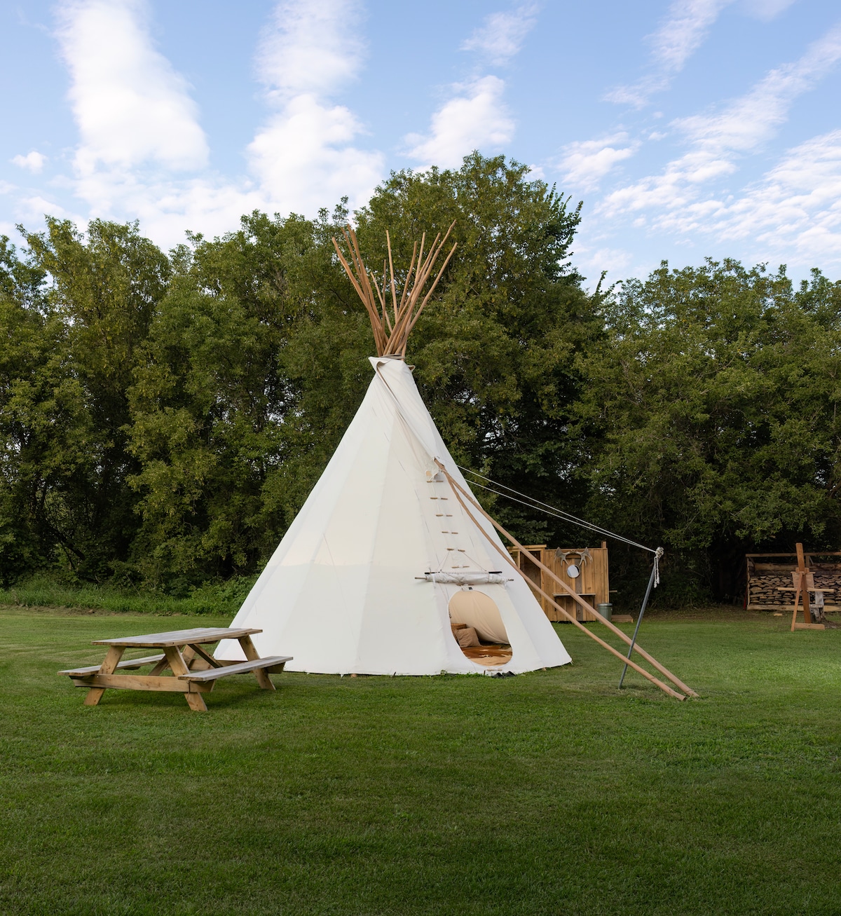 Rilassati nella nostra tenda glamping immersa nella natura su 10 ettari. Progettato per ammirare le stelle, questo accogliente spazio illuminato a energia solare dispone di un comodo letto, una doccia esterna alimentata a propano, una dependance rustica, un braciere/griglia e un'area picnic. Non c'è acqua corrente o idrica nella proprietà, l'acqua per la doccia sarà fornita per te. Potresti sentire il rumore occasionale degli attrezzi mentre continuiamo a sviluppare il terreno. Mai al mattino presto o a tarda sera.
