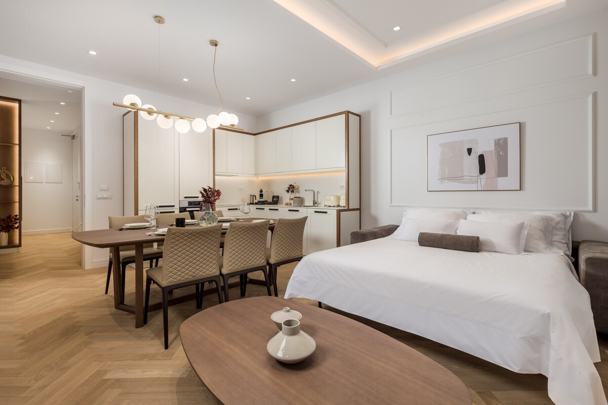 Godetevi un'esperienza di stile in questo alloggio in posizione centrale.L' appartamento è di 91m2 e si compone di due camere da letto, un soggiorno, aria condizionata, una spaziosa cucina con lavastoviglie e due bagni con doccia. La struttura offre la connessione WiFi gratuita. Questa suite dispone di TV satellitare a schermo piatto. Asciugamani e biancheria da letto gratuiti.L' appartamento è vicino a tutti i servizi(musei, monumenti culturali, stazioni degli autobus, stazione ferroviaria...).