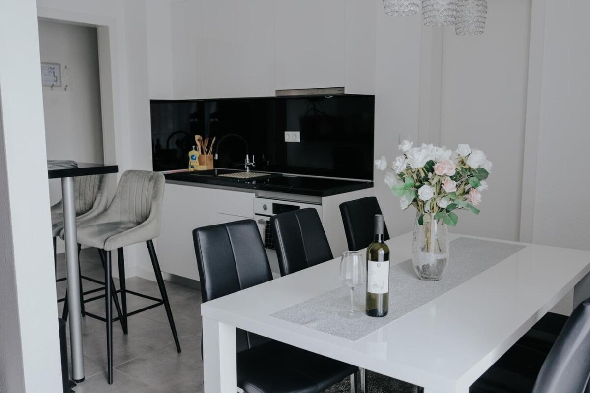 Odmorite se u modernom uređenju s daškom tradicije u potpuno opremljenom apartmanu s 4 zvjezdice u centru grada. Naš apartman smo u potpunosti opremili i pripremili za svoje goste kako bi se u njemu osjećali kao u vlastitom domu. Apartman ima jednu spavaću sobu s velikim krevetom i dva pomoćna kreveta. Smještaj je opremljen perilicom rublja, posuđa i glačalom za odjeću. Gostima nudimo self check-in i self check-out.