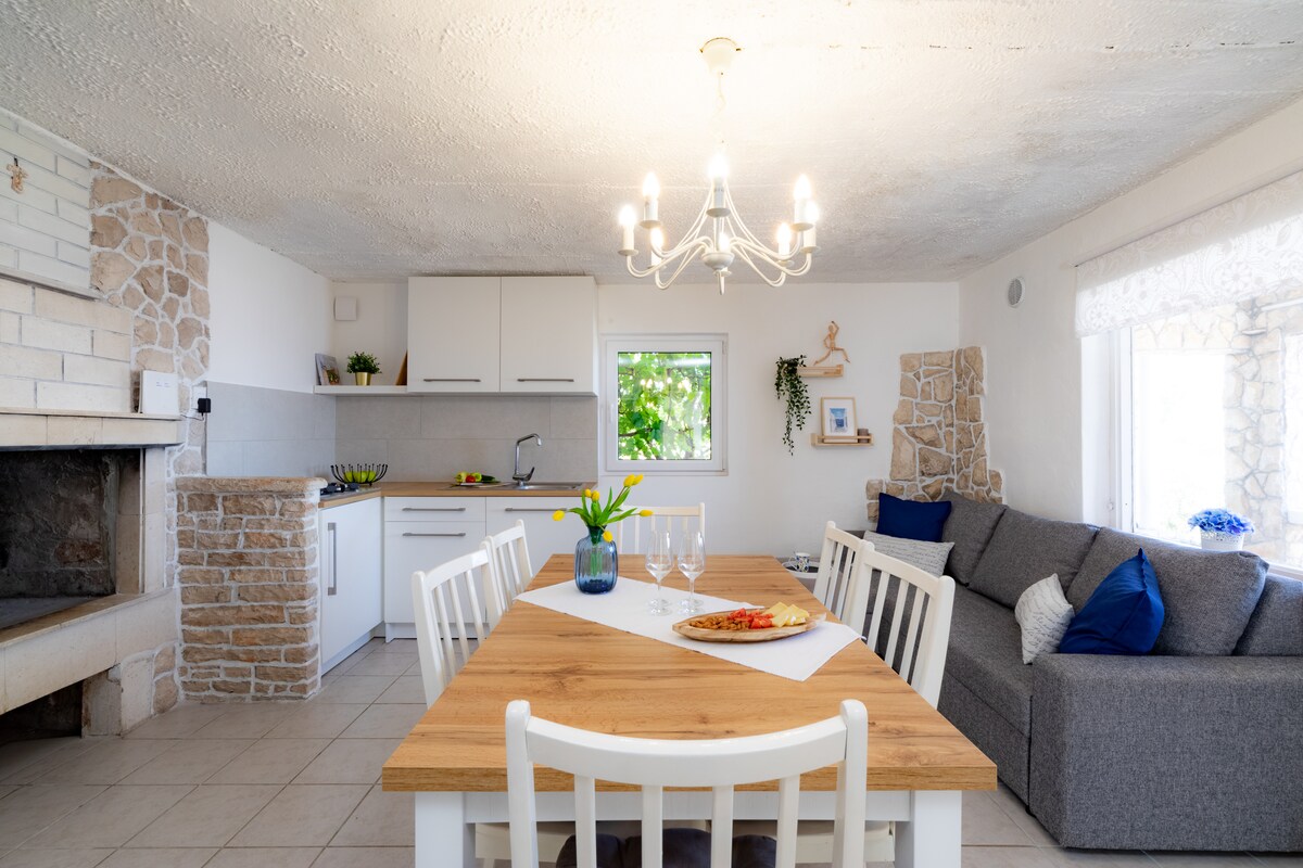 Accogliente casa di paese in un piccolo villaggio autentico di Potirna (isola di Korčula), vicino alle città di Vela Luka e Blato. È un'ottima occasione per trovare pace, fuggire dalla routine e ricaricare lo spirito. Si trova in campagna, ma ci vogliono solo 5 minuti in auto per raggiungere splendide località balneari, il che ti offre un motivo perfetto per trascorrere qui le tue vacanze. Si tratta di una casa di paese con 2 camere da letto e un autentico caminetto al centro della zona pranzo, che migliorerà l'incredibile sensazione di pace, calma ed edonismo. :)