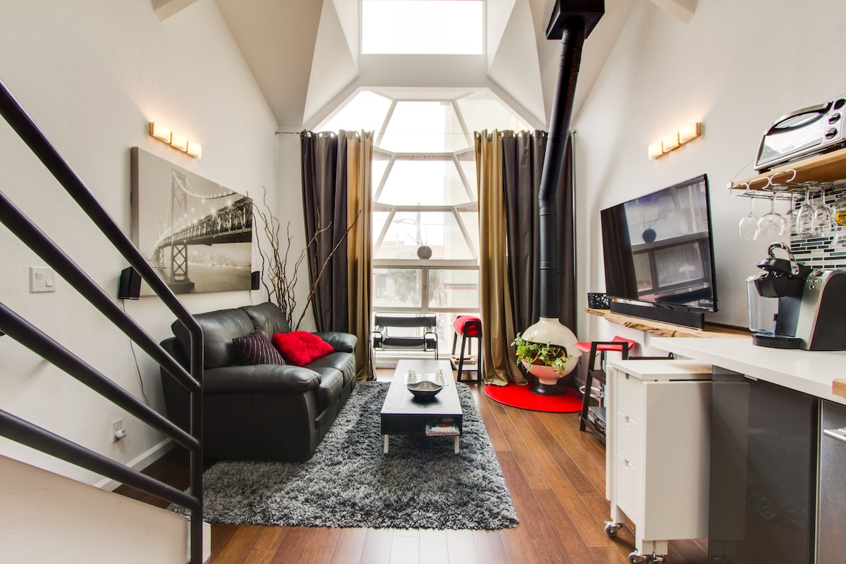 Brew coffee in a kitchen with bold wood cabinets, then curl up with a book on a cushioned bench set along floor-to-ceiling windows offering skyline views. Modern furnishings and colorful decor forge a trendy vibe within this bright loft apartment. The loft has all imported fixtures and finishes from Italy. It has Ralph Lauren deep brown carpet on the stairs and in the bedroom/office and polished concrete on the main level. There is also remote controlled blinds on the main windows and skylights. Access to the whole area described in the Summary. I can be available 24/7 at least the first and last day of their stay. Though likely at all times. The South of Market (SoMa) neighborhood has a lot of restaurants, bars and night clubs to enjoy. It is also very close to the Moscone Center. 3 1/2 blocks away from Civic Center BART/Muni Station. 20 minute walk to downtown. 4 blocks away from Moscone Center. 20 minute walk to AT&T Park SoMa is a hip neighborhood with a ton of restaurants to choose from, bars and night clubs, start-up companies around, close to the Moscone Center.