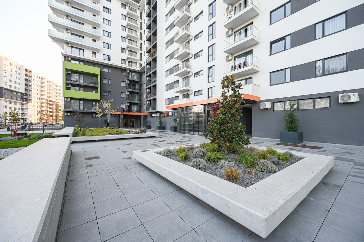 Ti diamo il benvenuto nella tua vacanza perfetta! Questo elegante e moderno appartamento con una camera da letto offre tutto il necessario per un soggiorno confortevole e indimenticabile. Goditi la comodità di due bagni, e lo spazio abitativo luminoso e arioso è perfetto per il relax. Che tu sia qui per lavoro o per piacere, questo elegante appartamento è una base fantastica per esplorare tutto ciò che Oradea ha da offrire. Prenota oggi stesso per goderti comfort, stile e paesaggi mozzafiato!