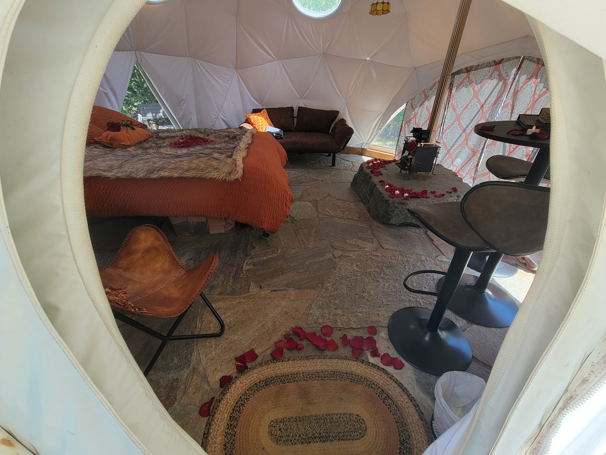 Cupola accogliente con aria condizionata: glamping in un alloggio autosufficiente a Portland