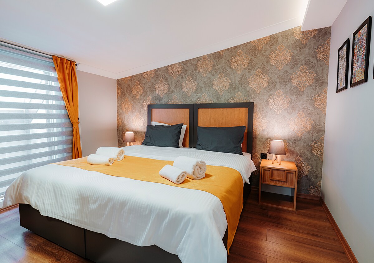 Questo appartamento nuovo e pulito, che si trova in una posizione centrale dove poter soggiornare in pace con la propria famiglia con tutti i suoi articoli, è al servizio dei nostri ospiti. Nota: i nostri appartamenti sono adatti per la famiglia, È necessario essere una famiglia o un requisito matrimoniale. Non sono accettati uomini e donne single. Accettati a condizione che siano gruppi di amici (almeno tre uomini o tre donne).