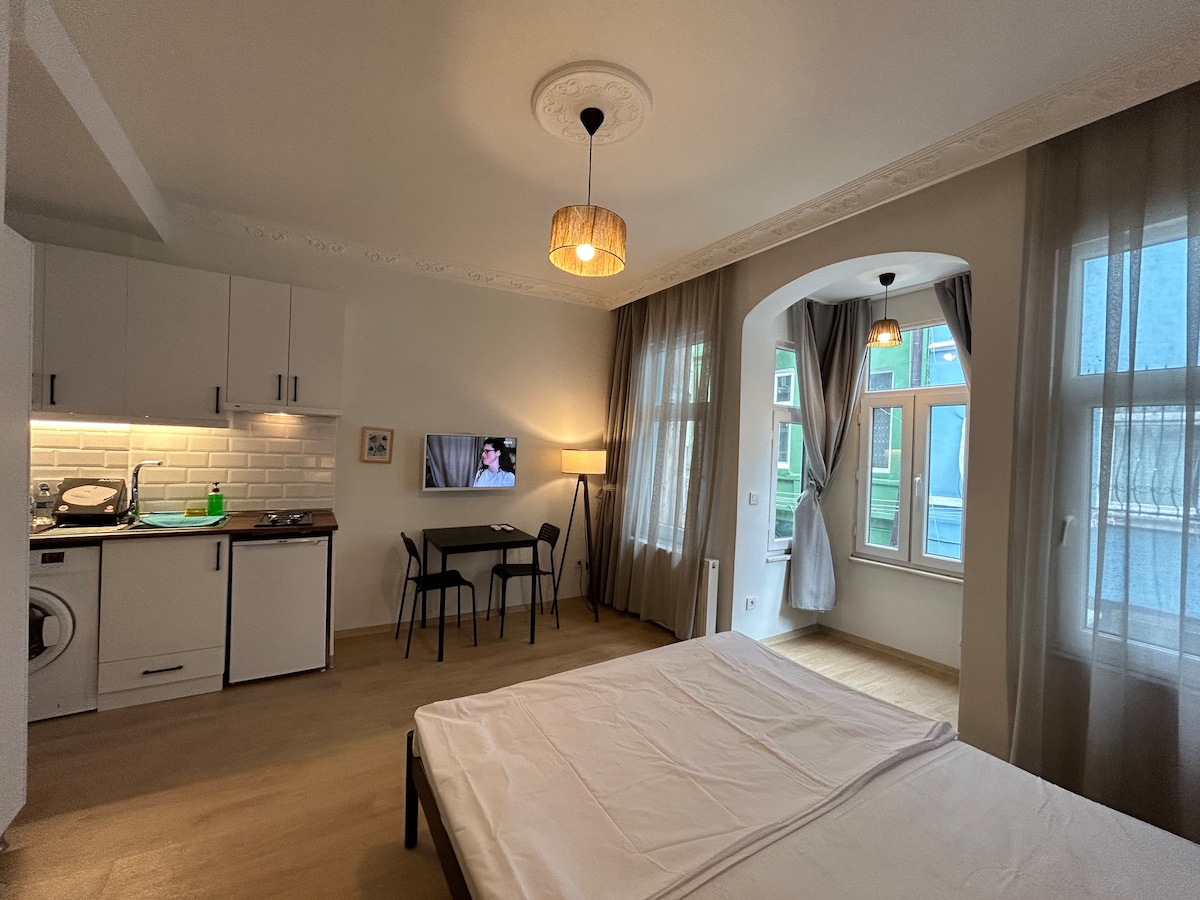 We are Tsn for Property Mngmt company with over 45 apts in our portfolio. Our 1 Br apt is located in Hacımimi street, Galata. Located in third floor, 500 meters away from Galata Tower w/ easy access to all attractions and hip restaurants & cafes in its neighbourhood. The apt is 45 sqm and well designed for our guests needs: 1 bedroom, a bathroom, a kitchen with all appliances and utilities, a large living room, ULTRA FAST wifi. We look forward to hosting you here