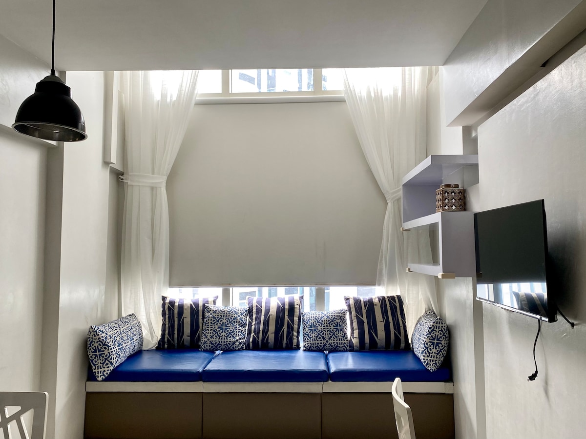 Ti diamo il benvenuto nella tua casa a BGC! Si tratta di un nuovissimo appartamento con 1 camera da letto situato in posizione strategica a Uptown Bonifacio, una cittadina che eleva continuamente l'ideale di vita urbana. Lo spazio ha finestre a tutta altezza, è stato progettato professionalmente con articoli nuovi di zecca ed elettrodomestici IKEA, e dispone di 2 condizionatori split in soggiorno e in camera da letto. L'edificio è dotato di piscine, palestra, portineria e spa, che ti aspettano!