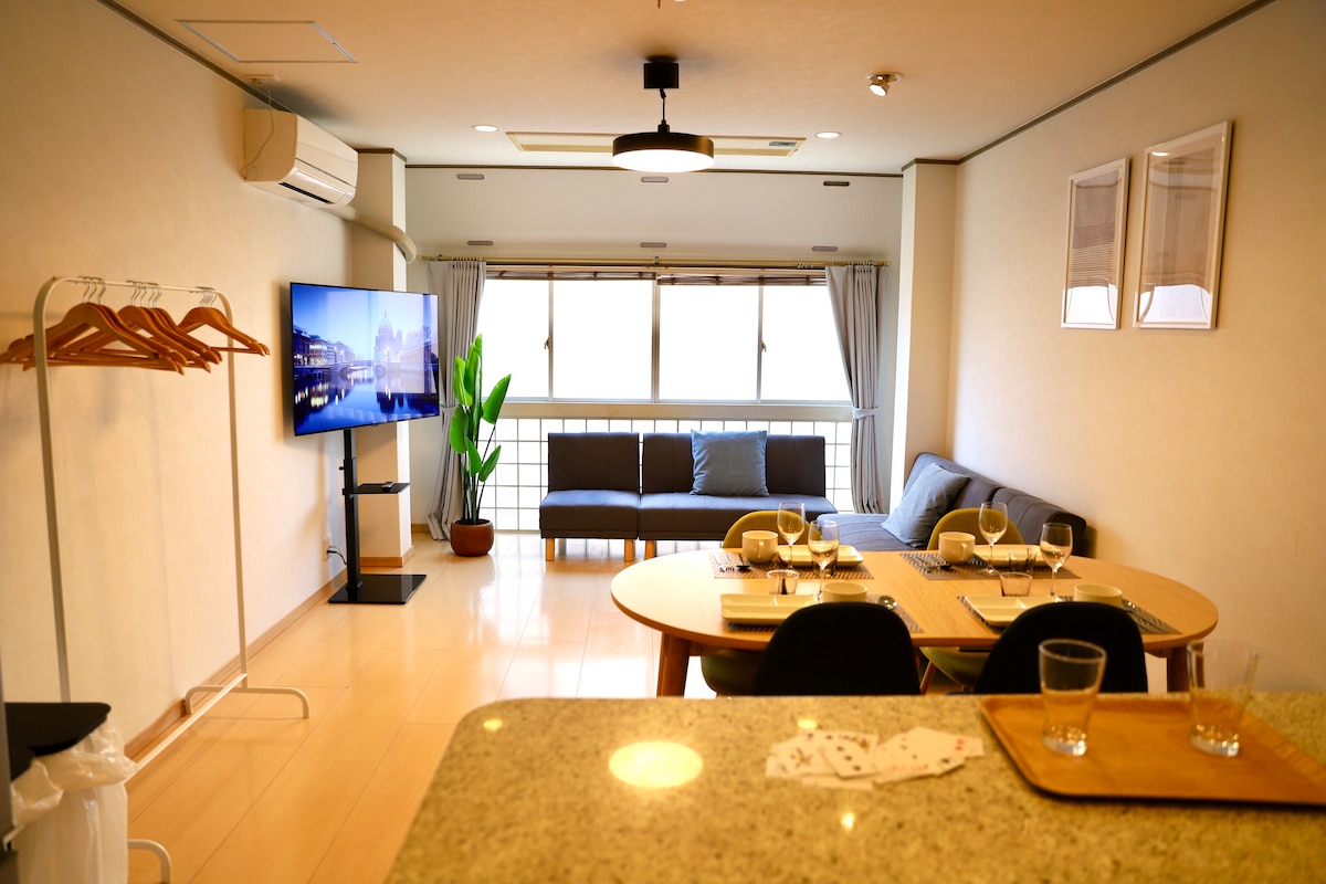 USJ電車5分|大阪駅14分|10名OK|3BR広々60㎡|家族&グループ最適