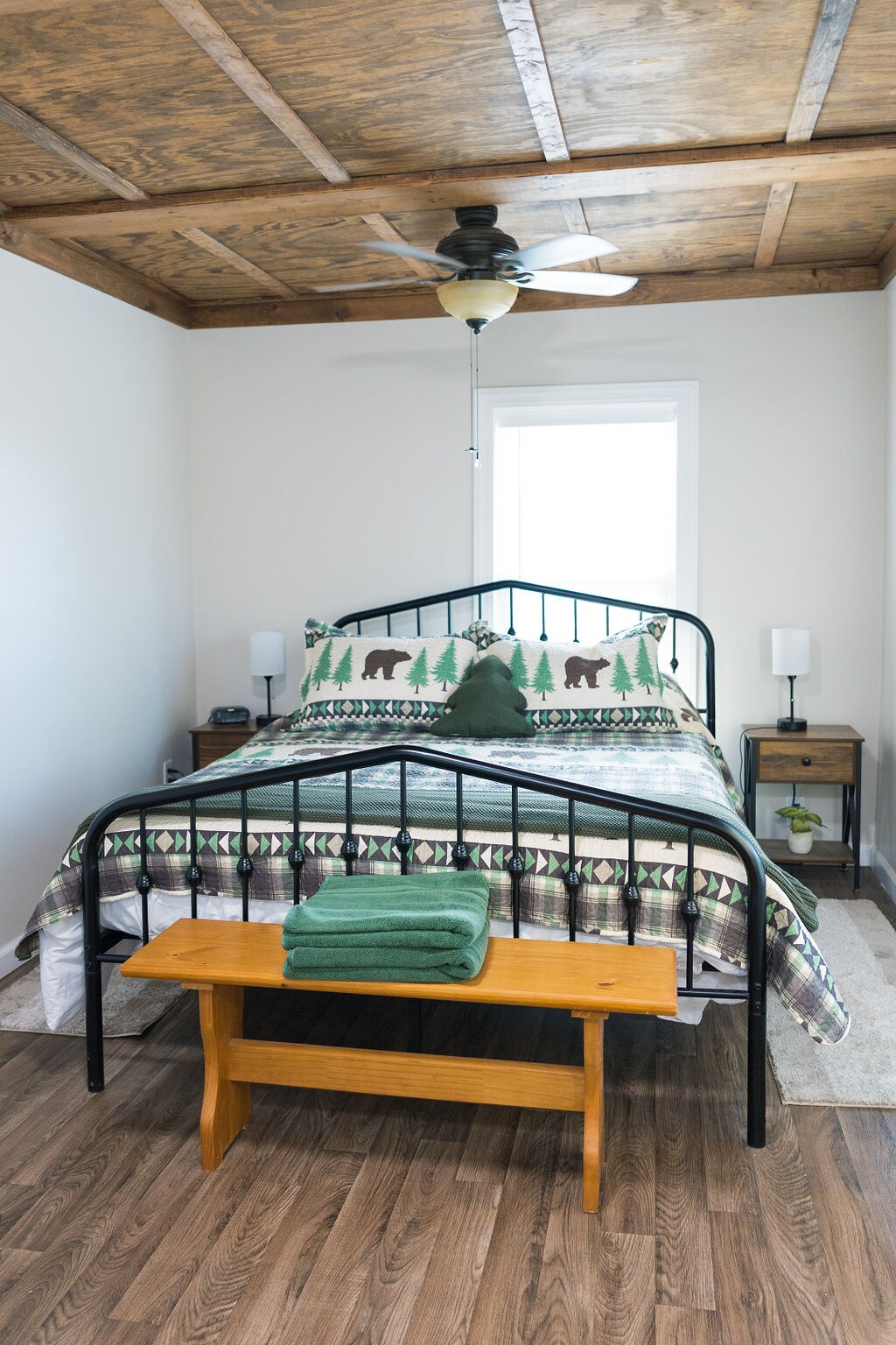 Questa minuscola baita di 32 metri quadrati si trova a pochi passi dall'inizio del sentiero Meadows, a Luzerne. A un isolato a est del famoso ristorante Ma Deeters. Questo chalet pulito e accogliente è il luogo ideale per rilassarsi tra i sentieri, i fiumi e i negozi Amish locali. Un letto matrimoniale nel soppalco e un divano letto estraibile a una piazza e mezza. Focolare 4 stagioni sul retro. Nell'area del focolare è disponibile anche una griglia a propano. Perfetto per una fuga di coppia, per divertirsi in piccola famiglia o per un weekend tra ragazzi! Scrivici in qualsiasi momento! :)