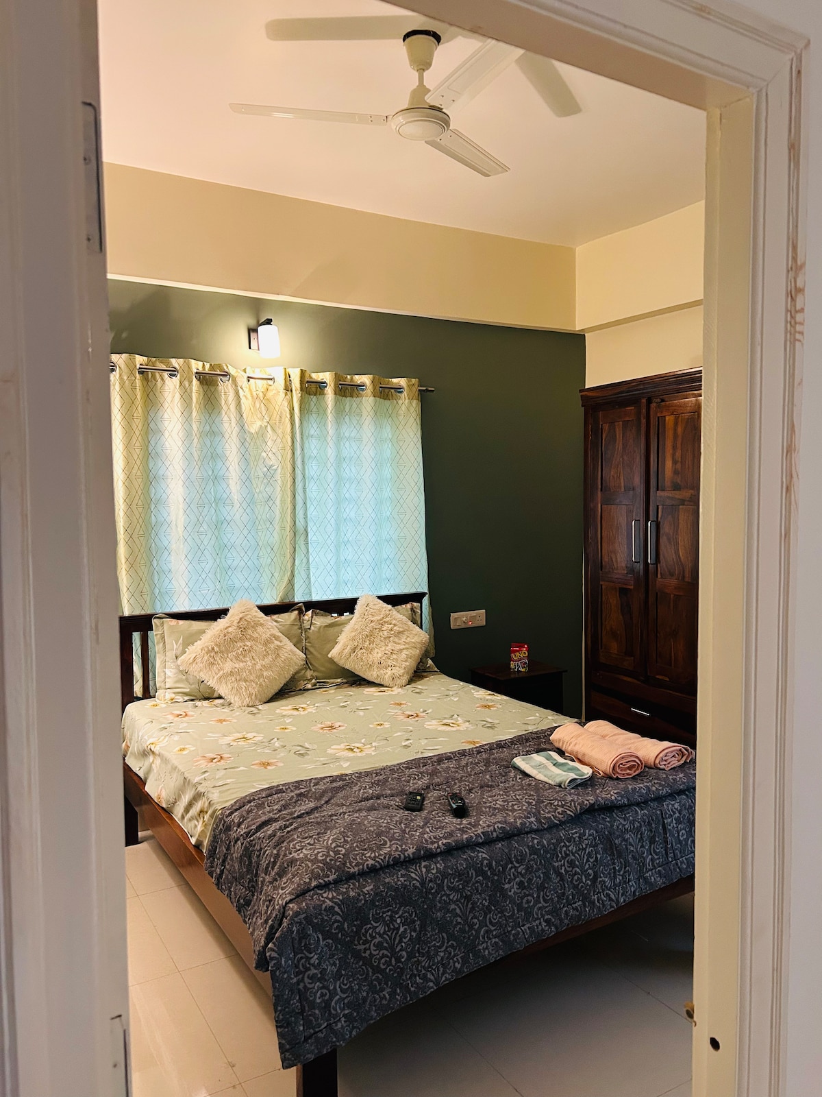 Rilassati con la famiglia in questo alloggio tranquillo, goditi la casa e lascia che la bellezza dell'arte e del colore trasformi il tuo soggiorno! Situato nel quartiere finanziario, dietro il consolato americano, è facilmente raggiungibile da Gachibowli, il centro della città, e gode comunque di una posizione tranquilla. Da 1,5 a 2 km da Microsoft, Amazon, Wipro e altre numerose società IT. Parco Sarene circondato da una vegetazione lussureggiante, con il cinguettio degli uccelli in sottofondo. — Non è permesso fumare né introdurre animali domestici all'interno dell'appartamento