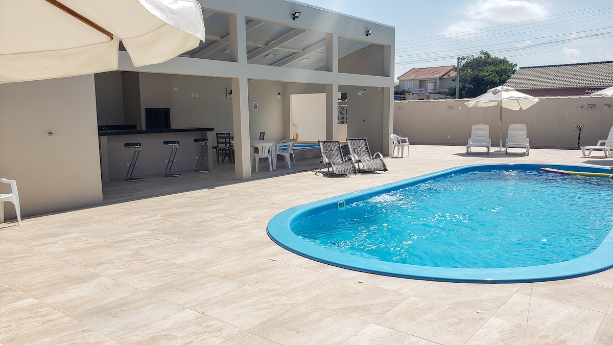 Check-in dalle 9:00 e check-out fino alle 17:00! Praticamente 2 notti al prezzo di una. - 150m dal mare, 50m dal centro di South Oasis, Tramandaí - 2 piscine riscaldate (una coperta), 2 saune e 2 SPA su oltre 800 m² - Sala giochi con TV 4k da 55 pollici, frigorifero, ecc. - Sala TV con XBOX One X, Arcade - Abbonamento a servizi di streaming - Parcheggio recintato nel patio accanto all'appartamento - Cucina con fornelli, forno a microonde, frigorifero, lavello, armadio e utensili - Ampio cortile, barbecue - Wifi