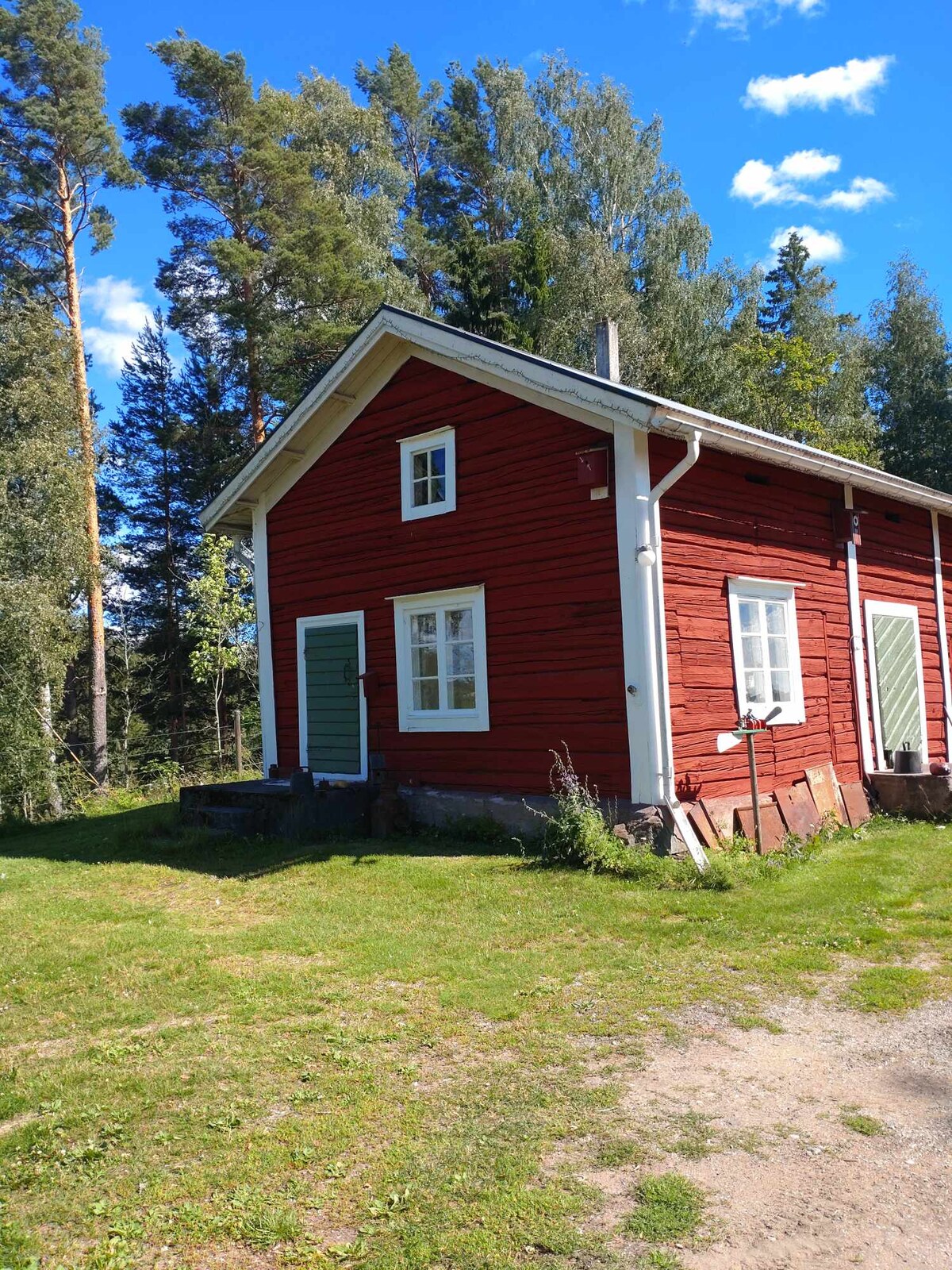 Un tipico e affascinante cottage rosso svedese in una posizione incantevole vicino a un lago (2 minuti a piedi) con il tuo posto per fare il bagno con piattaforma, accesso alla barca e una canoa per un massimo di 3/4 persone e pesca gratuita (puoi prendere in prestito attrezzatura da pesca semplice). Casa principale completamente attrezzata con 3 camere da letto. Inoltre, 1 piccola casa con 4 posti letto. È molto tranquillo e silenzioso qui, e potrai vedere pecore e cavalli pascolare vicino alla casa.