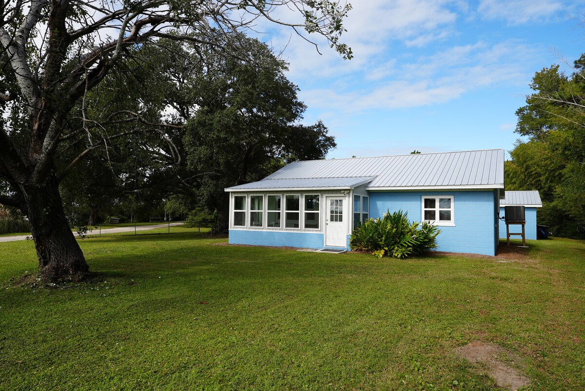 *Gorgeous bungalow in rural setting *Breathtaking Sunrises & Sunsets *Stunning water views overlooking Jarrett Bay *Sunroom 3 season porch * 2 bed, 2 bath Sleeps up to six guests on comfy mattresses * Launch your own boat or kayaks or rent across the street * Located 15-45 min to Beaufort, Atlantic Beach, Shackleford Banks, Cape Lookout, NC Aquarium * Game room, ping pong, foosball, yard games * Beach chairs, umbrella * Great location for Beach-goers, Duck Hunters, Cape lookout fishing *Fire Pit