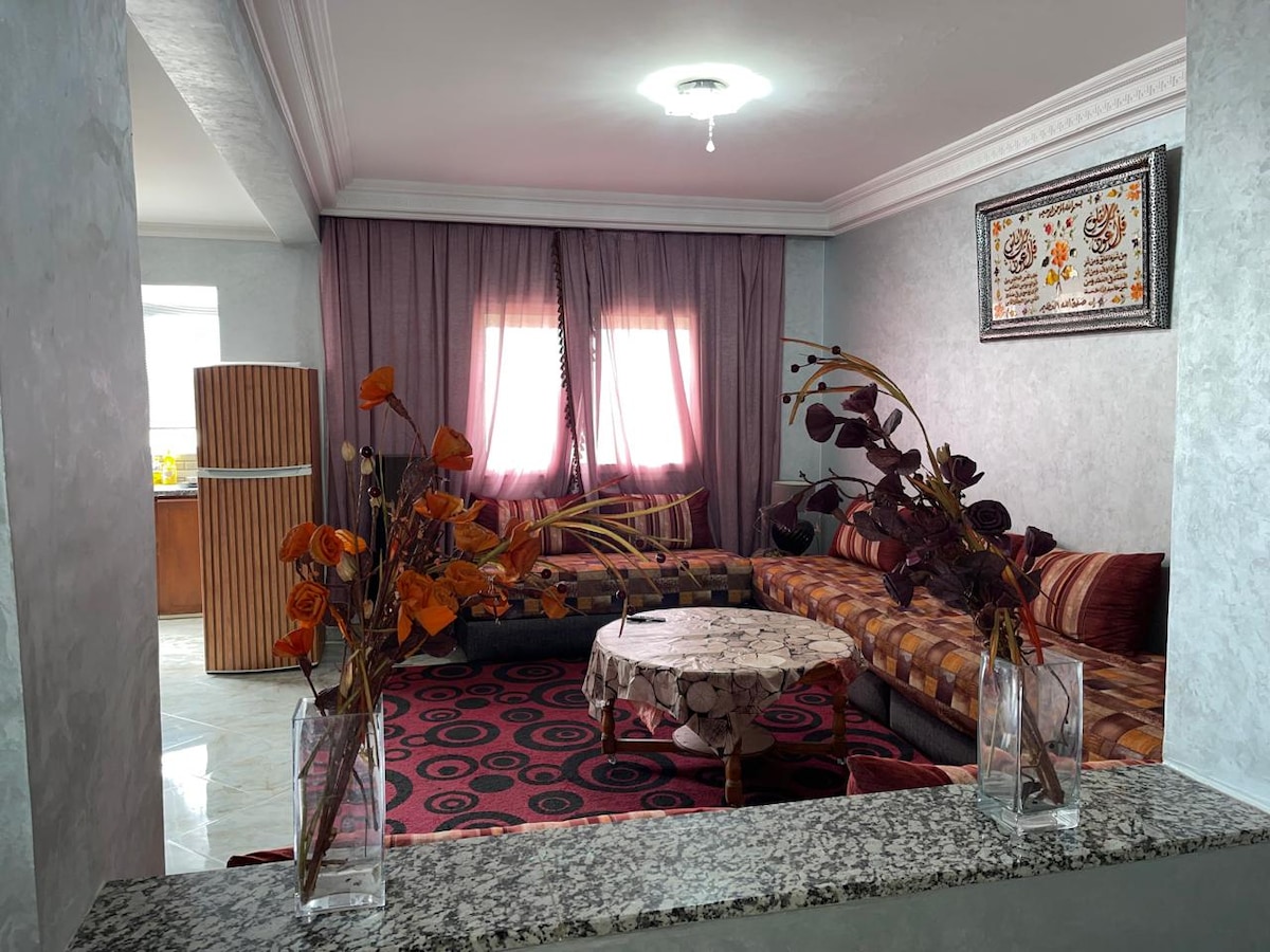 Sunny 1st-floor apartment in central Agadir, steps from cafés, shops, and a 10-minute walk to the beach. Enjoy a cozy living area with a 65'' TV, fast WiFi, and a full kitchen. We help you plan unforgettable experiences: camel rides, Agadir Sahara sunset & sandboarding, Paradise Valley trips, surf, skate, quad, jet ski, fishing & more. Airport transfer service available. ⚠️ Only registered guests are allowed, no outside visitors.