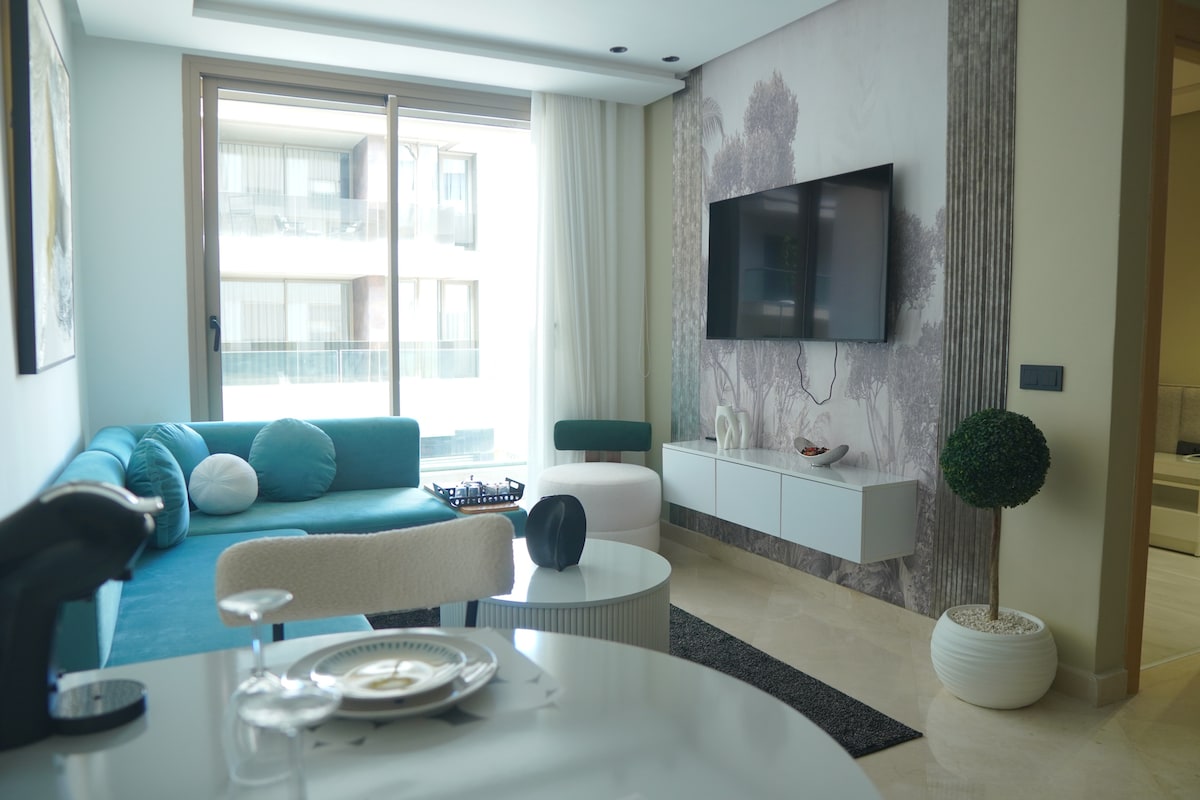 Perla 403 💎 , un havre de paix où l'élégance d'une résidence moderne s'allie au confort des hôtels 5* en plein cœur de Casablanca ! Relaxez-vous dans un salon spacieux au design moderne, équipé d'une Smart TV 55’ avec Netflix et IPTV pour des soirées de détente absolue. La chambre, véritable nid douillet, vous promet des nuits paisibles et réparatrices ☁️ Depuis votre balcon privé, admirez les splendides couchers de soleil sur la ville, rendant chaque moment de votre séjour inoubliable ! ✨