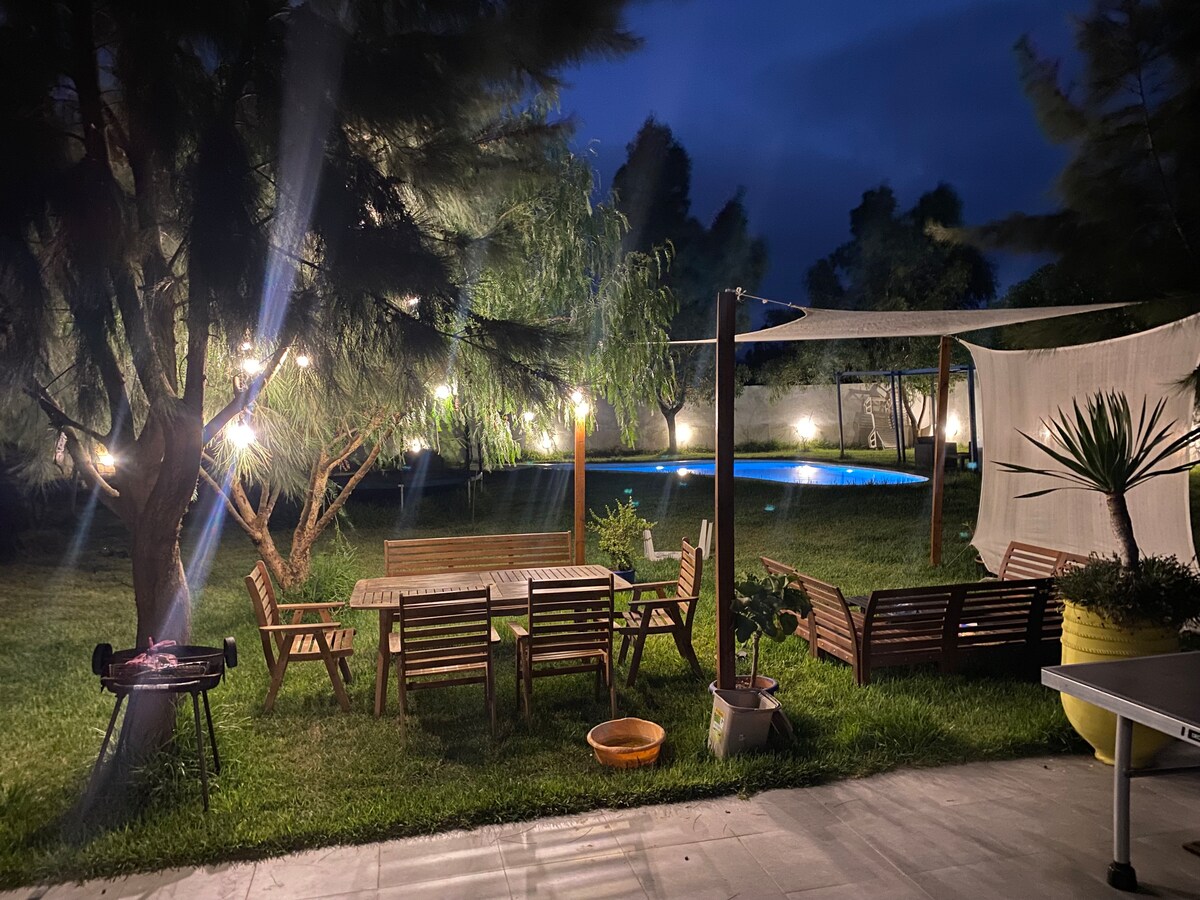 Piscina di 1,5 m, braciere al tramonto, cielo stellato e tranquillità totale in una tenuta privata di 12 ettari. Casa di campagna per famiglie dal fascino semplice: aria condizionata centralizzata, cucina attrezzata, camere da letto confortevoli, Wi-Fi e parcheggio in loco. Una fuga nella natura per privacy e riconnessione, cena sotto le stelle e goditi il silenzio. Ideale per famiglie, coppie e lavoro a distanza in campagna.