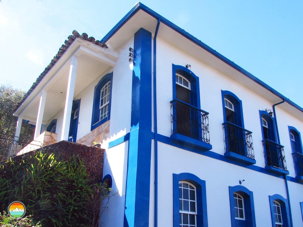 Suíte situada na cidade patrimônio Ouro Preto, a 4 km do centro histórico, bairro tranquilo próximo às montanhas do parque estadual do Itacolomi. A suíte conta com entrada privativa, cama king size, banheira com hidromassagem TV, 01 giga de WI-Fi, varanda com vista para o jardim, espaço para home office, frigobar, microondas, cafeteira, mesinha com cadeiras para refeições dentro do quarto e ofereço café da manhã tradicional mineiro. Obs: estacione de ré. Ofereço piscina por uma taxa extra.
