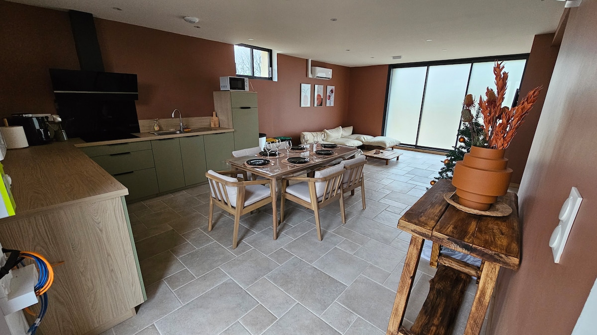 La Longère 1851 vi accoglie in un ambiente luminoso e accogliente, pensato per il vostro comfort. Inondata di luce naturale, ogni dettaglio è stato curato per creare un’atmosfera elegante e rilassante. Godetevi gli spazi conviviali, la Family Room (con biliardo, calcio balilla e freccette) e “La Source des Sens”, area benessere privata con spa, sauna e doccia. Eleganza, relax e svago vi aspettano per un soggiorno indimenticabile in totale serenità.