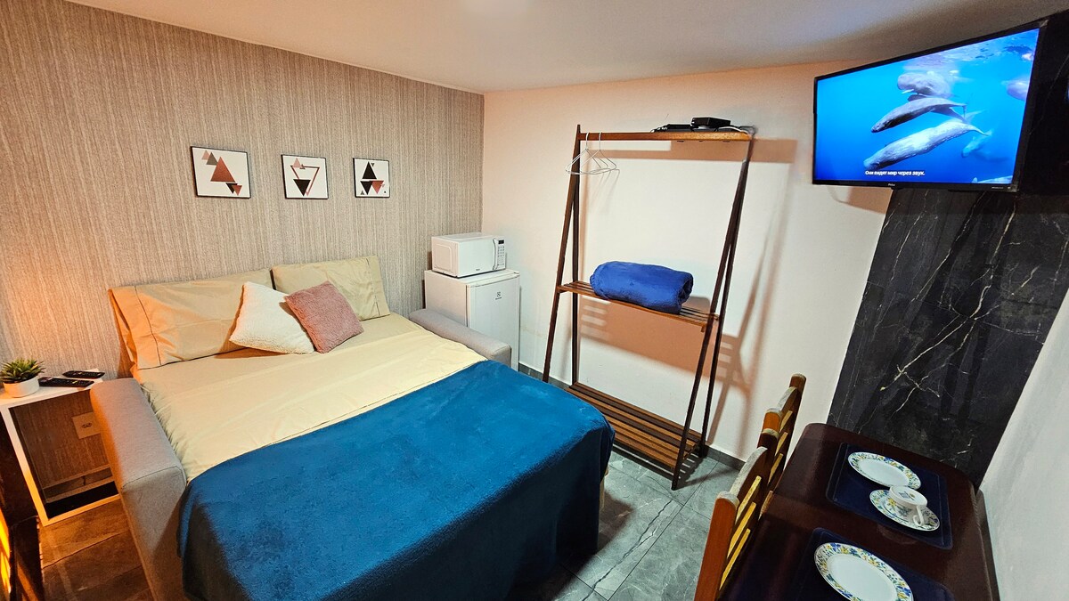 Suite a 400 metri dal centro di Cabo Frio, la suite n. 3 è l'opzione migliore per soggiornare vicino a tutto ciò che la città ha. Si trova a 900m da Praia do Forte e con tutto vicino: mercati, panetterie, farmacie, ristoranti, ecc... La suite n. 3 ha un ingresso privato: letto matrimoniale, 1 letto singolo e dispone anche di minibar, forno a microonde, macchina per il caffè, macchina per panini e aria condizionata. All'esterno c'è uno spazio fresco per i fumatori. TV con accesso ai corsi d'acqua; ARIA CONDIZIONATA SPLIT