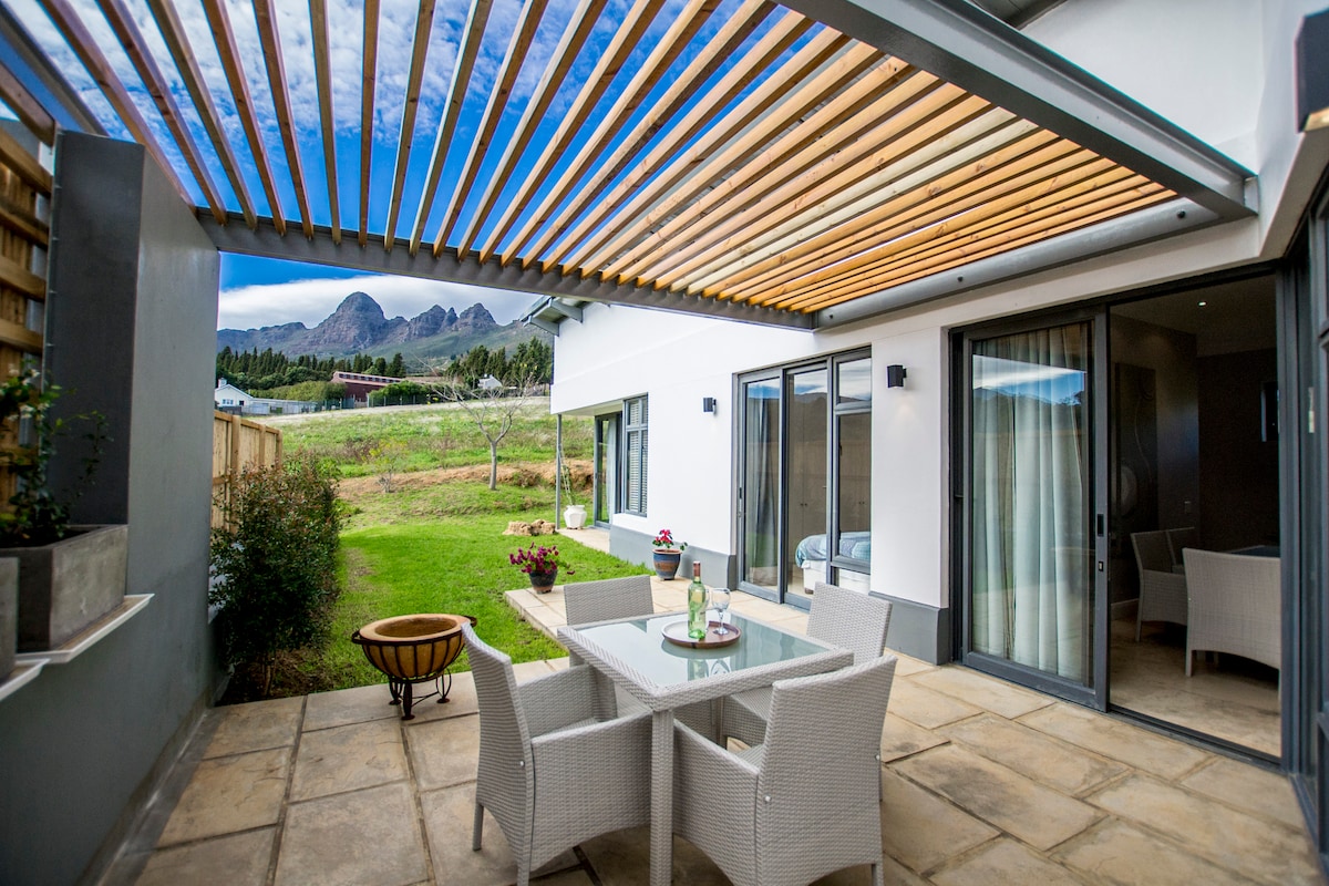 Un rifugio ideale, il nostro monolocale è un'unità privata con giardino e angolo cottura, situata sul fianco della montagna in una fattoria di 300 ettari, con piscina (in comune) e spiagge nelle vicinanze (15 minuti). Off the Grid: dispone di un proprio generatore e di acqua fresca di sorgente estratta in alta montagna. Viste panoramiche su paesaggi marini e montani, circondato da fynbos e uccelli selvatici, vicino a Città del Capo (55 km), all'aeroporto (40 km) e ai negozi (7 km). Rilassati dopo una giornata intensa nel tuo boma privato o a bordo piscina.