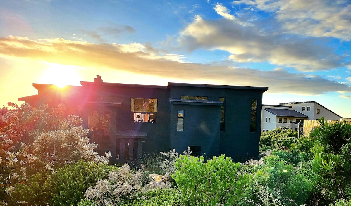 An ideal escape, our Studio is a private, self-catering garden unit located on the mountainside on a 300 Ha farm , with a pool (shared), & beaches closeby (15 min). Off the Grid - own power supply & fresh spring water extracted high in the mountains. Panoramic views over sea and mountain landscapes , surrounded by fynbos and wild birdlife , close to Capetown (55 km), airport, (40km) shopping amenities (7km) . Unwind after a busy day and relax at your private boma or around the pool.