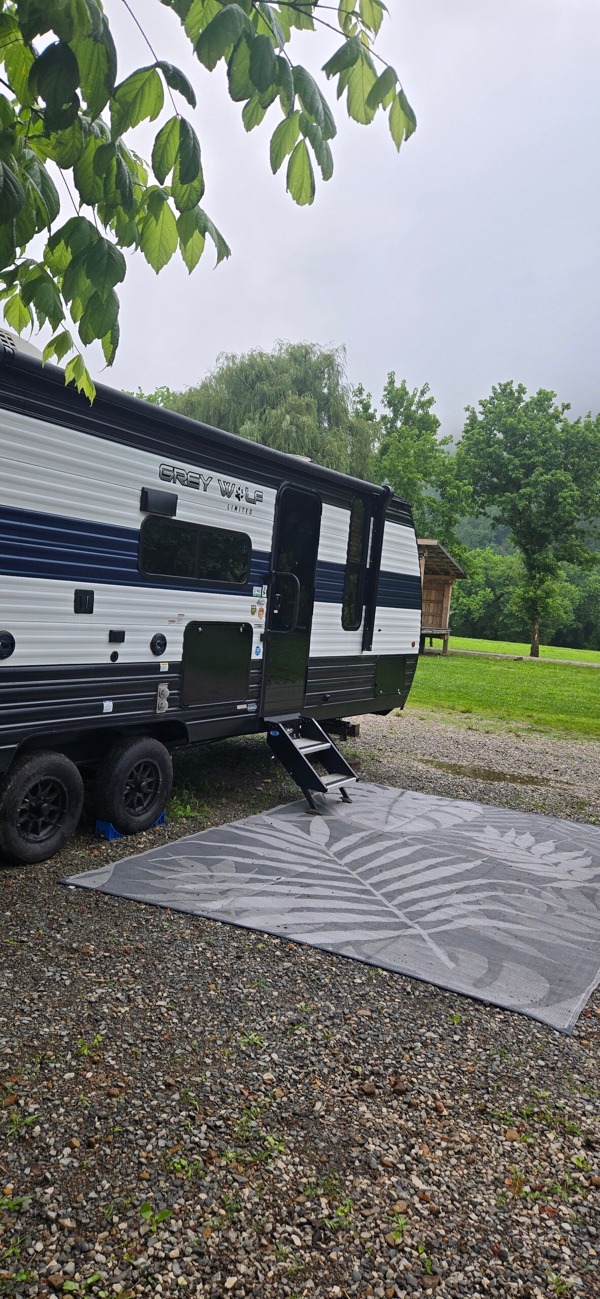 Reconnect with nature at this camper nestled in this beautiful country side campground. If you are looking for a place with activities like fishing, hiking, a park, ATV riding trails and kayaking or just some peace and quiet, You will find it here. Our happy place is nestled in the country. It is equipped with many of your home amenities including an air fryer/convection oven. Also for your entertainment is a 43 in TV with Roku and built in Bluetooth to connect and play music, inside or out.