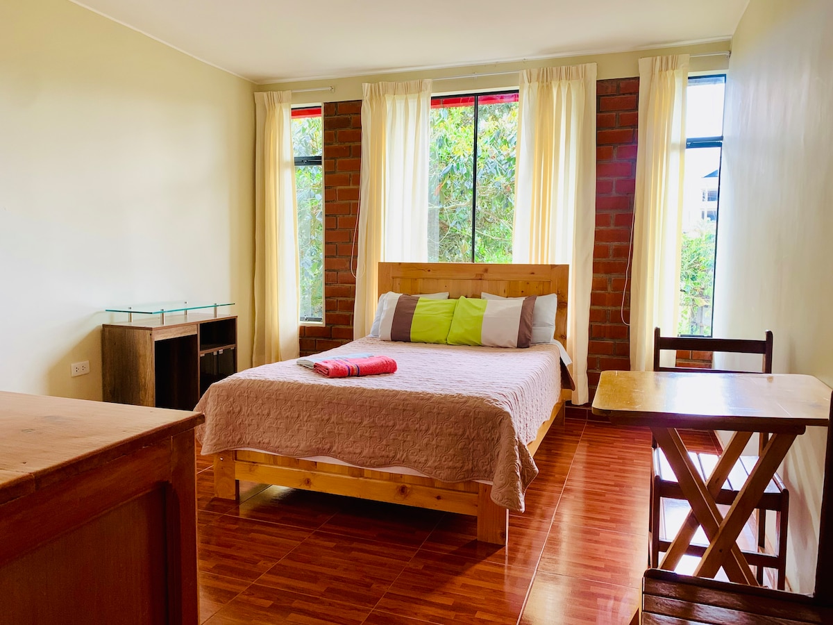 Goditi il nostro mini appartamento con 2 camere da letto, angolo cottura completamente attrezzato, WiFi Starlink ad alta velocità e lavanderia in comune. A 9 isolati dalla piazza principale, in un complesso residenziale con strade lastricate, NON SIAMO IN CENTRO, ma siamo vicini. Vista sulle montagne e sulla valle, ideale per famiglie, coppie o amici che cercano la perfetta combinazione di tranquillità, comfort, splendide viste sulla campagna, ma a un passo dal centro di Oxapampa e a un prezzo ragionevole. Prenota oggi e crea ricordi indimenticabili!