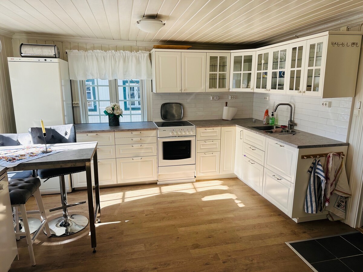 Casa spaziosa con posizione idilliaca nella fattoria, vicino a Lillehammer, Hunderfossen e Hafjell. Adatto sia per coppie che per famiglie. 1° piano: cucina ben attrezzata, sala caminetto, lavanderia con lavatrice. 2° piano: 2 camere da letto con letti dbl, 1 camera con 1 letto matrimoniale e 2 letti singoli, bagno e servizi igienici separati. Patio privato e parcheggio con caricabatterie per auto elettriche. Centro di Lillehammer: 12 minuti Hunderfossen/Hafjell: 15 minuti Bagno di svago di Jorekstad: 5 minuti Letti rifatti e pulizia di cui 20% a 7 giorni
