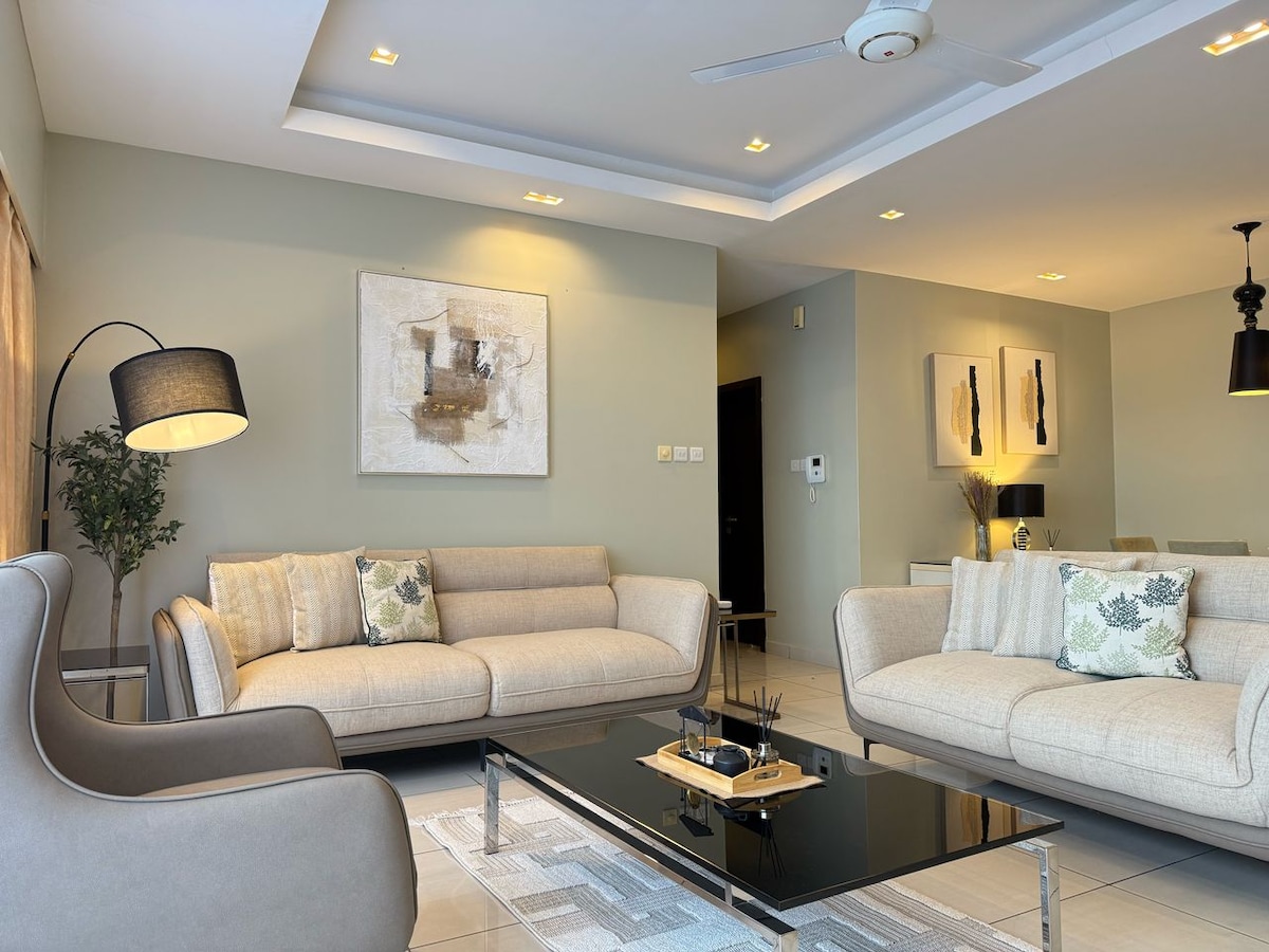 Ti diamo il benvenuto in un soggiorno di lusso: un appartamento tentacolare e adatto alle famiglie immerso nel cuore della città, dove la comodità incontra la stravaganza a ogni angolo. L'ampia zona giorno vanta ampie finestre, inondando lo spazio di luce naturale e offrendo panorami mozzafiato. Il design a concetto aperto collega perfettamente il soggiorno, la sala da pranzo e la cucina, creando un'atmosfera invitante.