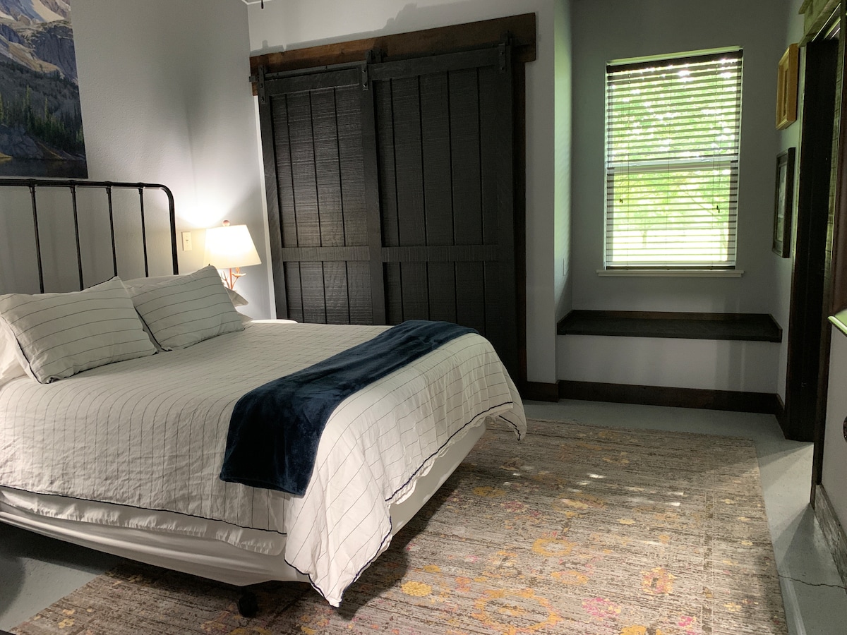 Questo spazio di classe e accogliente ti consentirà di liberare la tua immaginazione. Il mix unico di moderno e rustico si fonde splendidamente in questo Barndominium completamente attrezzato. Il cortile privato offre una vista incredibile e i tramonti sono imperdibili. Cucina nella cucina ben fornita. Mettiti comodo per guardare un film sulla smart TV. La camera da letto matrimoniale è spaziosa e offre un sonno incredibile con un materasso amato dagli ospiti! Per più di 2 ospiti, nel soggiorno principale sono disponibili un letto a due piazze e divani.