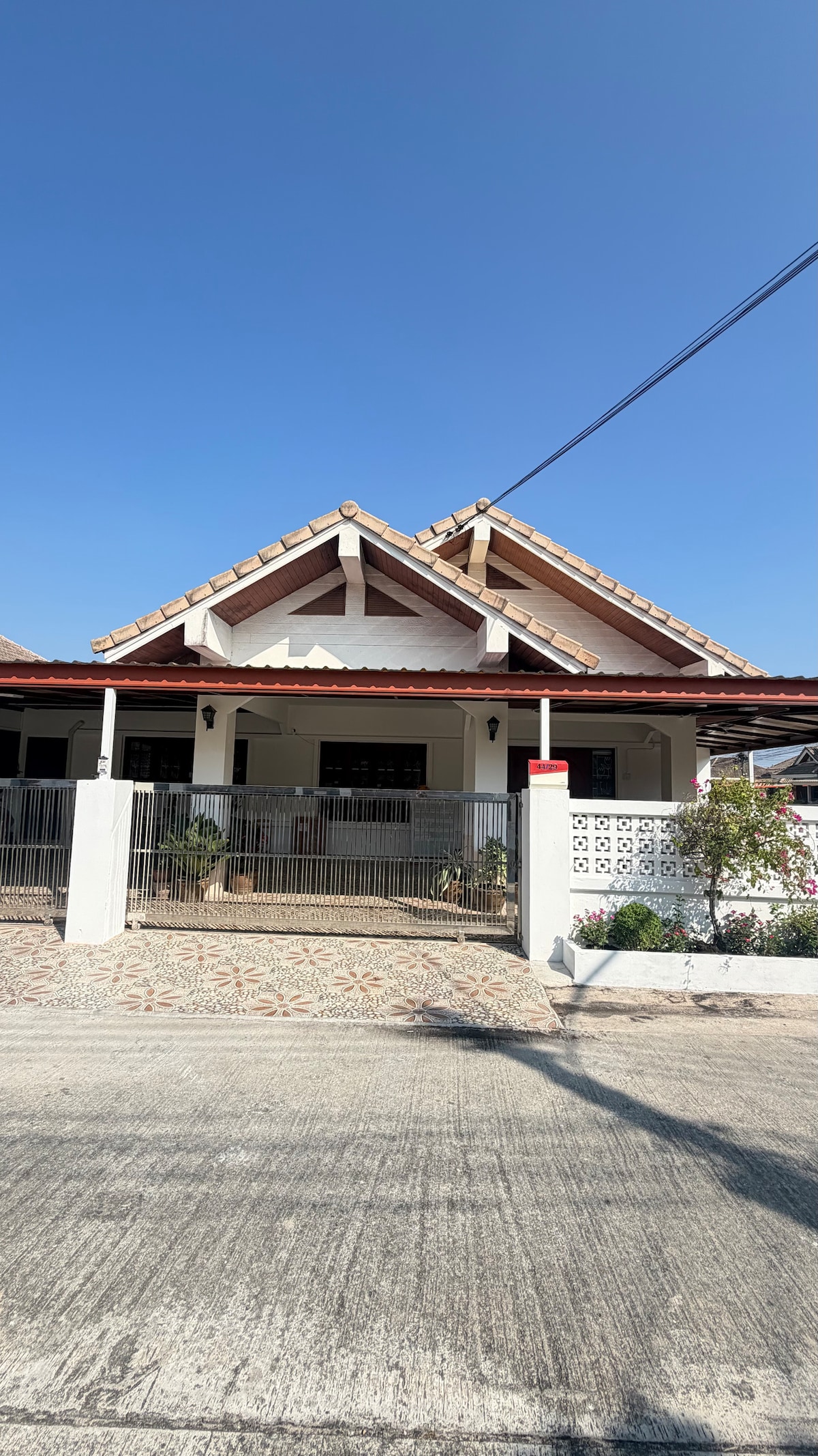 moderno bungalow con 3 camere da letto....2 camere da letto en_suite.con frigo TV e aria condizionata..... letti king size più divani letto..3 ° camera da letto letto matrimoniale e divano letto.....soggiorno può ospitare 3 persone in più... tutta la casa può essere prenotata per 3000THB.....no colazione inclusa... i padroni di casa nelle vicinanze possono aiutare con qualsiasi richiesta...lavanderia e cucina disponibile per l'uso anche...Piccola tassa per l'uso della lavatrice. 40thb per il pieno carico. piccola piscina spruzzi aggiunto 2019...ideale per i bambini.