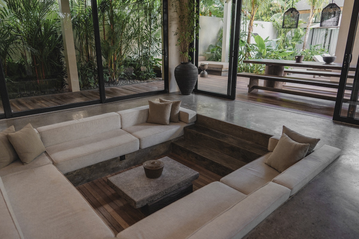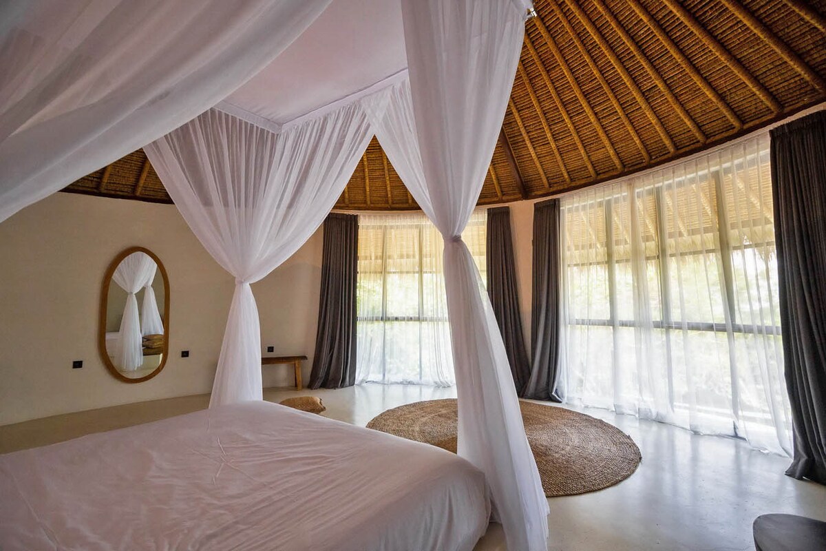 Villa Bhakti offers the perfect retreat for couples seeking privacy and comfort. This 110 m² villa features a spacious master bedroom with a super king-size bed and an elegant en-suite bathroom with a luxurious bathtub. The villa blends modern architecture with natural wood and stone accents, creating a warm yet sophisticated atmosphere. A fully equipped Western-style kitchen and inviting living room open directly to a lush garden, where you can enjoy fresh air and glimpses of the ocean.