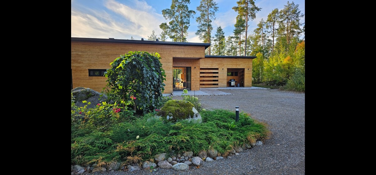 Lusso, silenzio e privacy Rilassati e goditi la natura vicino al lago cristallino di Vesijako. La villa offre comfort moderni: A/C, lavastoviglie e lavatrice, sauna e vasca idromassaggio con acqua del lago e vista sul lago. Molti marchi di design finlandesi (Marimekko, Iittala, Fiskars, Balmuir) si trovano nei tessuti e in cucina. È possibile utilizzare una canoa, tavole da SUP e una barca a remi con motore elettrico. Al prezzo viene aggiunto l'uso della vasca idromassaggio. A meno di 2,5 ore di auto da Helsinki, 2 ore dall'aeroporto di Helsinki