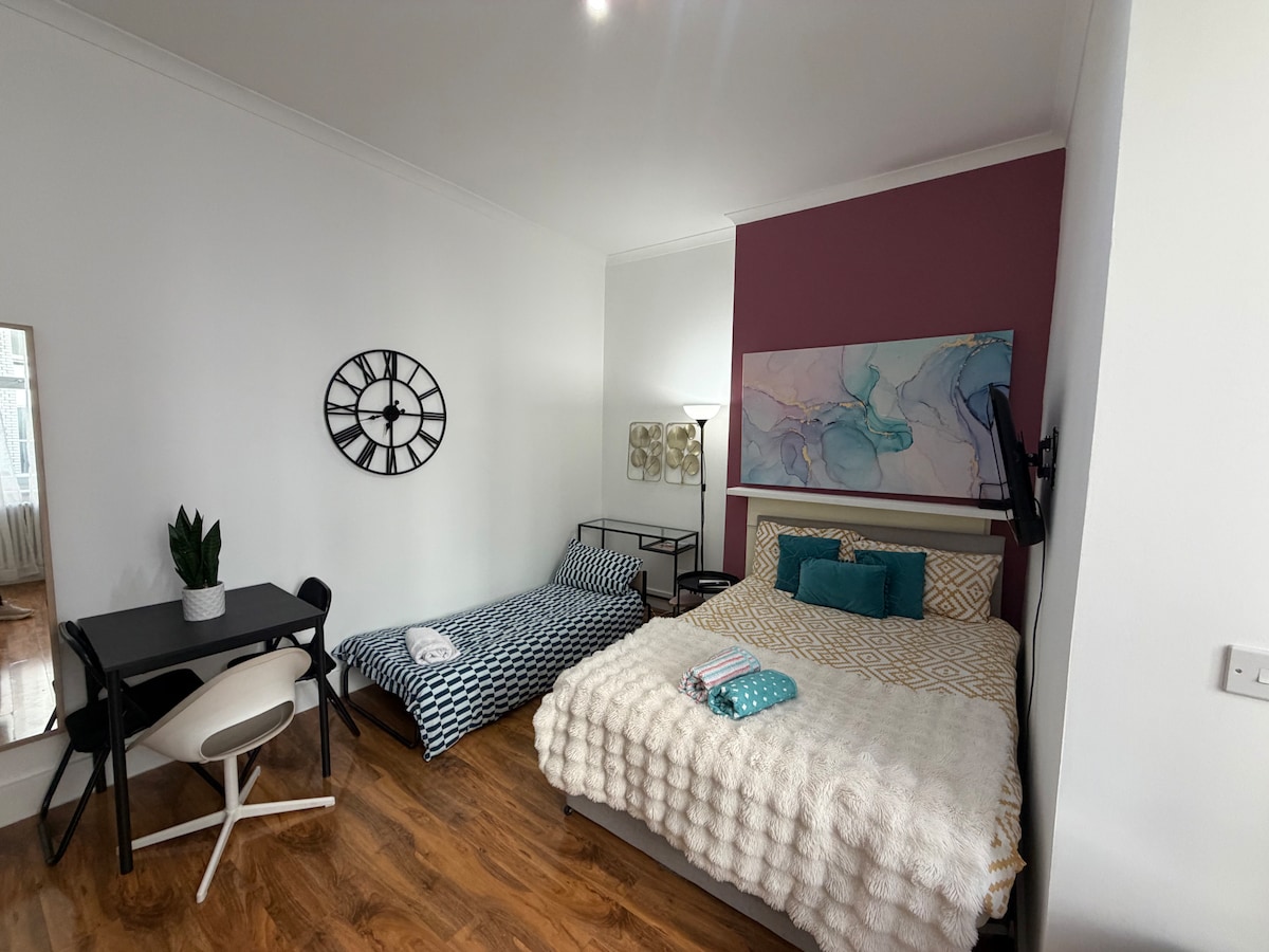 • Elegante appartamento ristrutturato con 1 letto e giardino privato • Lettino da viaggio per famiglie, seggiolone, cancelli di sicurezza e parco giochi nelle vicinanze • Posti letto: 1 letto in memory foam (180 cm), divano e 4 materassi a pavimento • Biancheria da letto da 500 fili, soffici asciugamani, Wi-Fi (1000 Mbps), Smart TV, altoparlante • Cucina dello chef, lavatrice e asciugatrice separate, asciugacapelli e ventilatore Dyson • Deposito bagagli dalle 11:00 alle 15:30 • Metropolitana: Royal Oak (4 minuti), Bayswater (9 minuti) e Paddington (8 minuti) • Altri alloggi: www.airbnb.co.uk/s/homes?host_id=1408974
