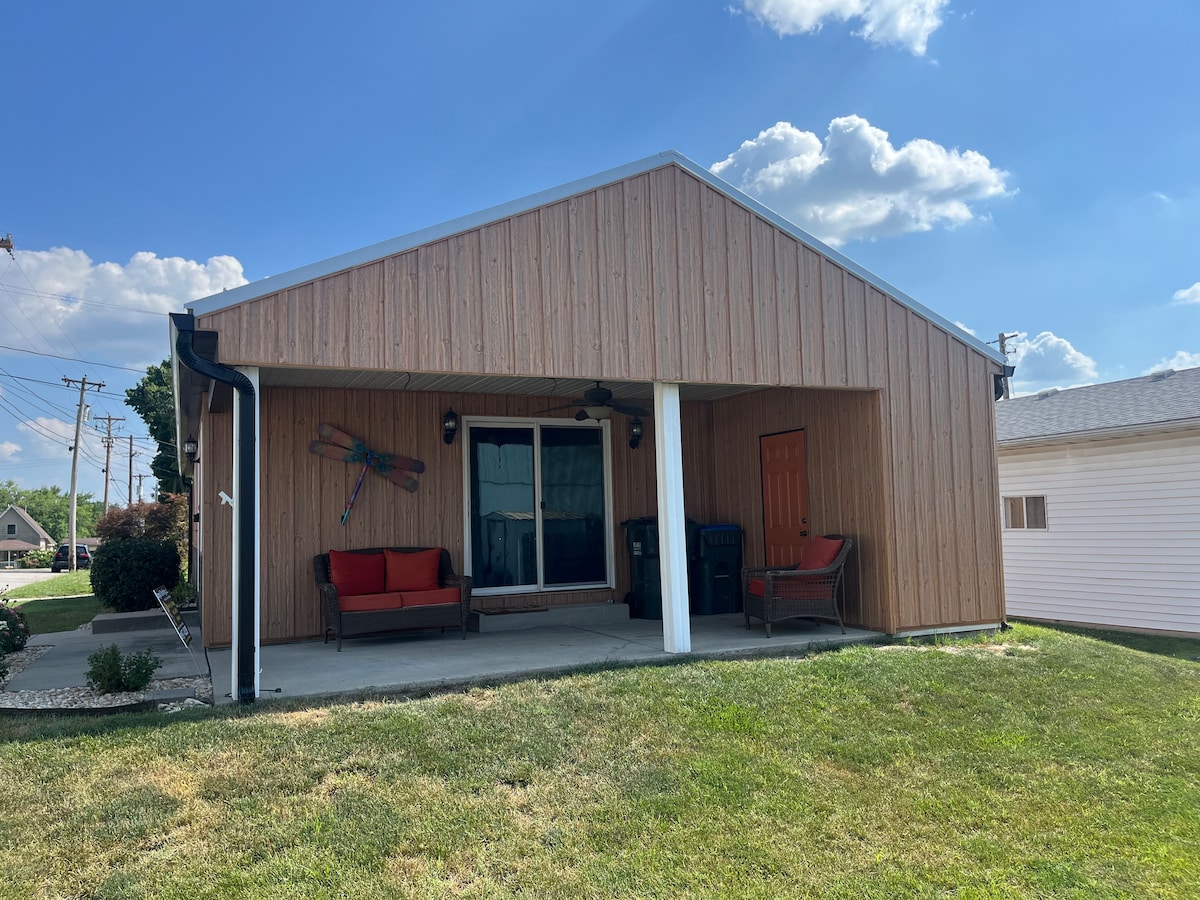 Questa capanna di tronchi con una camera da letto è stata costruita nel 1953 e si trova in una città sicura e accogliente dell'Illinois, che fa parte dell'area metropolitana di St. Louis. È possibile raggiungere a piedi la città (ristoranti, birrerie artigianali, concerti, spettacoli) e si è comunque vicini alle attrazioni di St. Louis. Perché affrontare il traffico e preoccuparsi del parcheggio o della sicurezza? Gli ospiti amano il nostro chalet pulito e tranquillo e l'accogliente città di Waterloo.