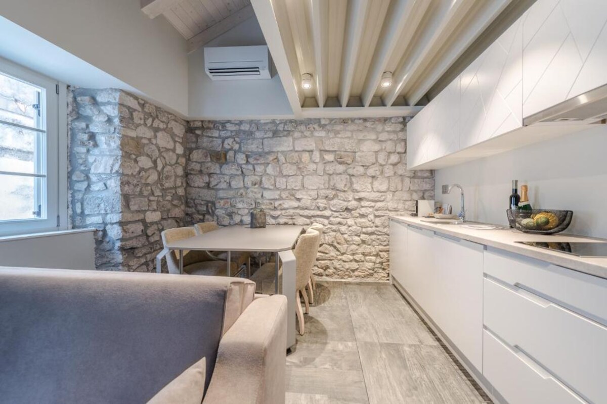 In the quiet village of Ugljan, a short ferry ride from the city of Zadar, you can find our fully renovated apartment in a several hundred years old Dalmatian stone house. We offer a stylish, 3 bedroom, 2 bathroom duplex, with a separate entrance, private terrace and free parking space. The nearest ⛱ is less then 5 minutes by foot, as well as 2 supermarkets, a small green market and several coffee shops. Our neighbors can offer you organic products such as local olive oil, cheese & wine.