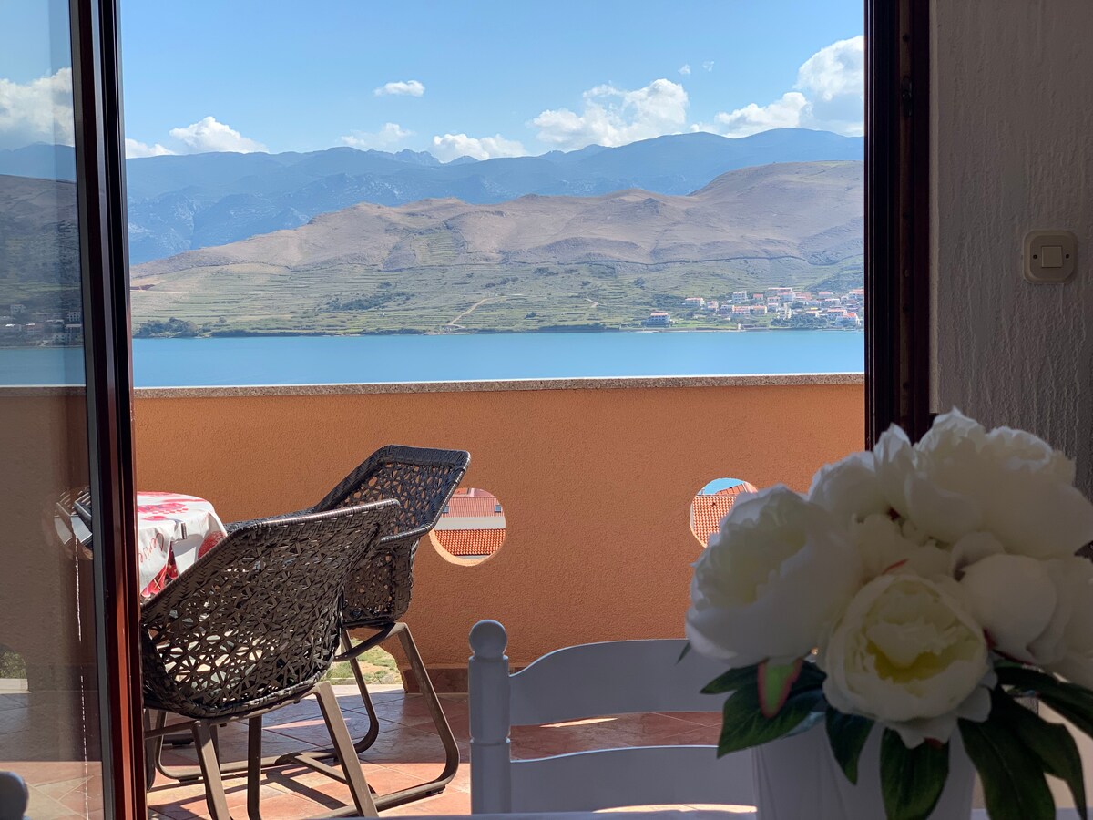 Arroccato su ripide rocce, a 30 metri sul livello del mare, questo monolocale idilliaco è un rifugio perfetto per una vacanza indimenticabile. Circondato dalla riserva naturale di Dubrava-Hanzine, offre un'esperienza di lusso, come ad esempio la vista mozzafiato sulla baia di Pago e sulla catena montuosa del Velebit. La spiaggia di Rozin Bok dista 50 metri dall'appartamento. Parcheggio, aria condizionata, griglia esterna e doccia solare esterna inclusi. Durante il soggiorno nell'appartamento, sono disponibili SUP e kayak.