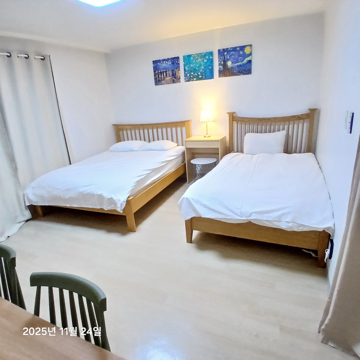 È uno spazio con abbastanza spazio per riposare fino alla sera, quando si può entrare alle 20:00 e uscire alle 17:00 del giorno successivo. Vicino a Lafesta e Western Dome, ma all'inizio, quindi si può dormire tranquillamente. Risponderemo a qualsiasi domanda via mail :) Camera da letto) Letto matrimoniale, biancheria da letto invernale di colore chiaro sostituita ogni giorno, 2 asciugamani a persona, TV 42 pollici con NETFLIX, YOUTUBE e TVING, specchio a figura intera Bagno) Shampoo, balsamo e bagnoschiuma, set da bagno monouso, piastra, asciugacapelli, pettine, balsamo per capelli e contenitore per lenti a contatto, bigodini C'è anche un bagno in comune★ al 1° piano, quindi potrete godere dell'effetto di avere 2 bagni.★ Cosmetici) Ci sono tutti, quindi potete semplicemente venire♡ Cucina) peperoncino in polvere, olio di canola, sale, tè Il parcheggio all'interno dell'edificio è costoso, quindi si consiglia di utilizzare il parcheggio pubblico Jang Hang 1, 2, 3. Poiché il parcheggio è difficile, abbiamo offerto un prezzo basso e fornito molti articoli necessari nell'alloggio.