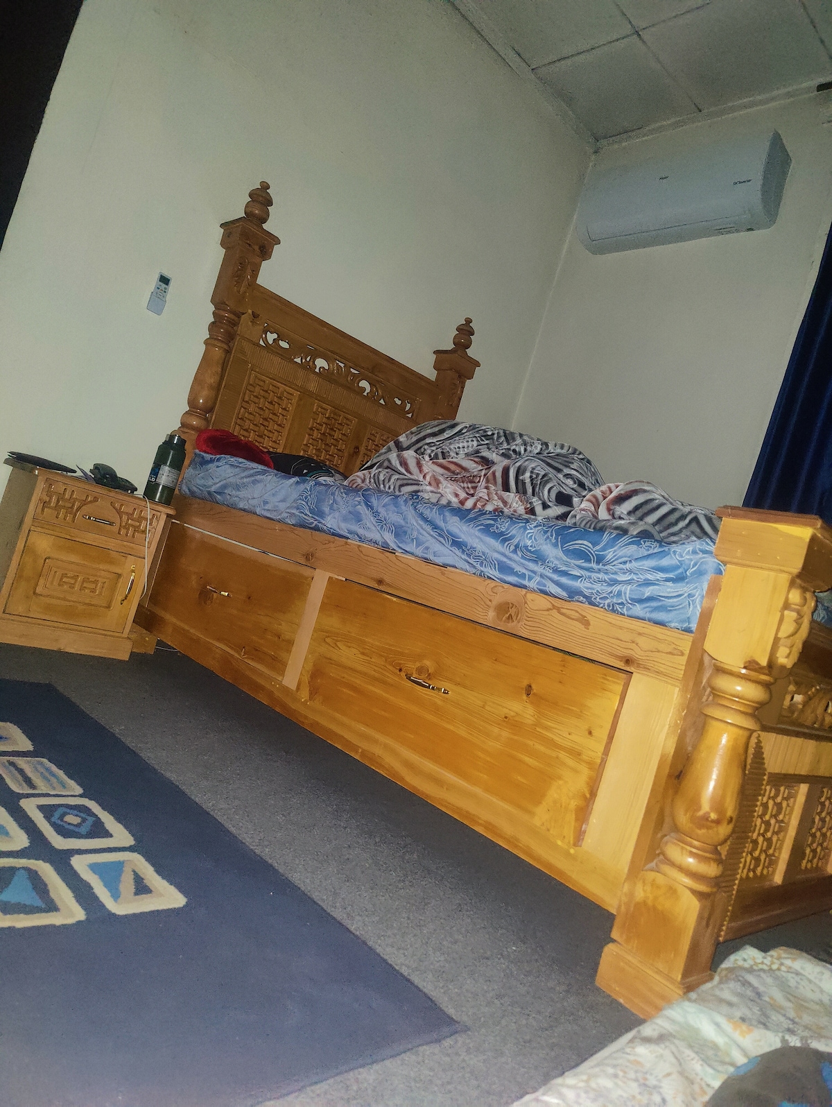 La carta d'identità/passaporto sarà richiesta dopo la prenotazione tramite Airbnb e potrebbe essere richiesta per motivi di sicurezza durante il soggiorno. - Wi-fi -A.C/Heating - Bagno annesso con acqua calda - Cucina e salotto in comune. - Letto matrimoniale king-size, mini-frigo e armadi. -smart TV. I materassi sono addebitati separatamente per 500 pkr ciascuno (3 materassi sono gratuiti) Vietato fumare nei locali dell'alloggio Sono ammesse solo coppie sposate a causa delle leggi locali pakistane (documentazione richiesta) visitatori ammessi solo con autorizzazione