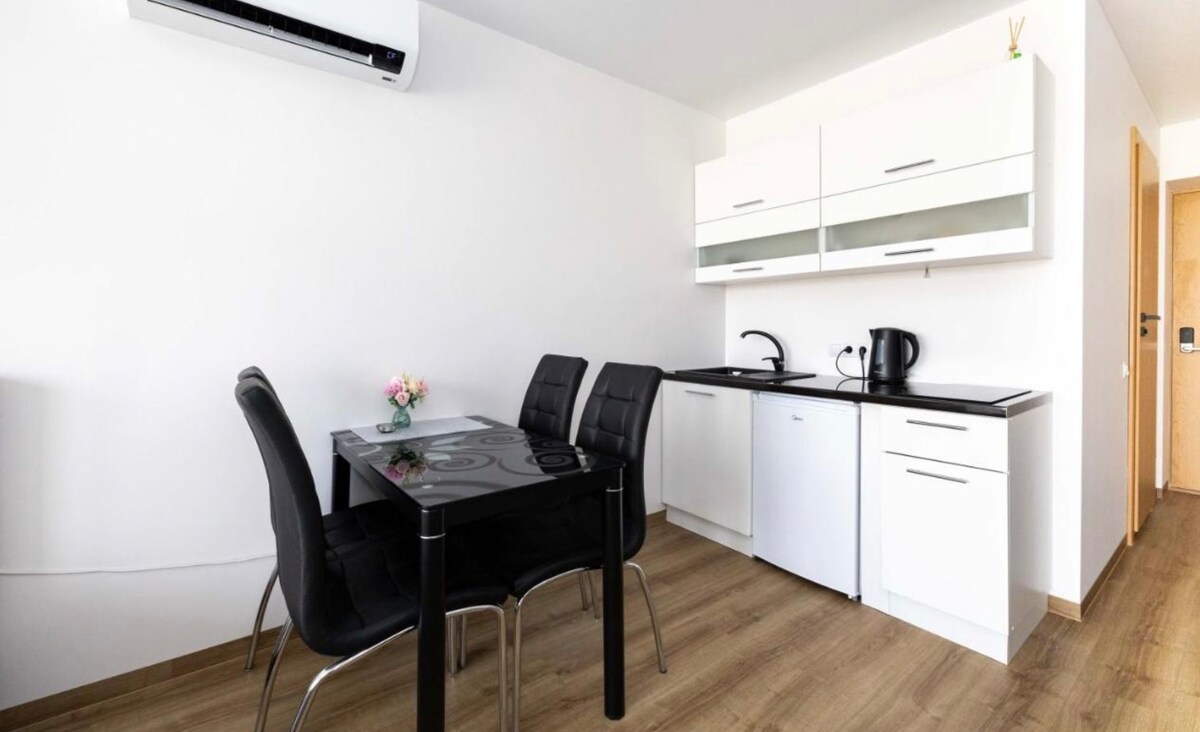 Piccolo e accogliente appartamento a 900 metri dal mare Questo moderno monolocale è dotato di divano letto e letto pieghevole riposto nell'armadio (ideale per un bambino o un adolescente), se necessario. Ci sono molti servizi all'interno del complesso che puoi utilizzare Alcuni dei servizi: • Piscina • Forno per pizza • Barbecue • Noleggio di biciclette • Sauna Parcheggio dedicato gratuito in loco! Ideale per 2 persone Nel caso avesse ulteriori domande, non esiti a contattarmi!