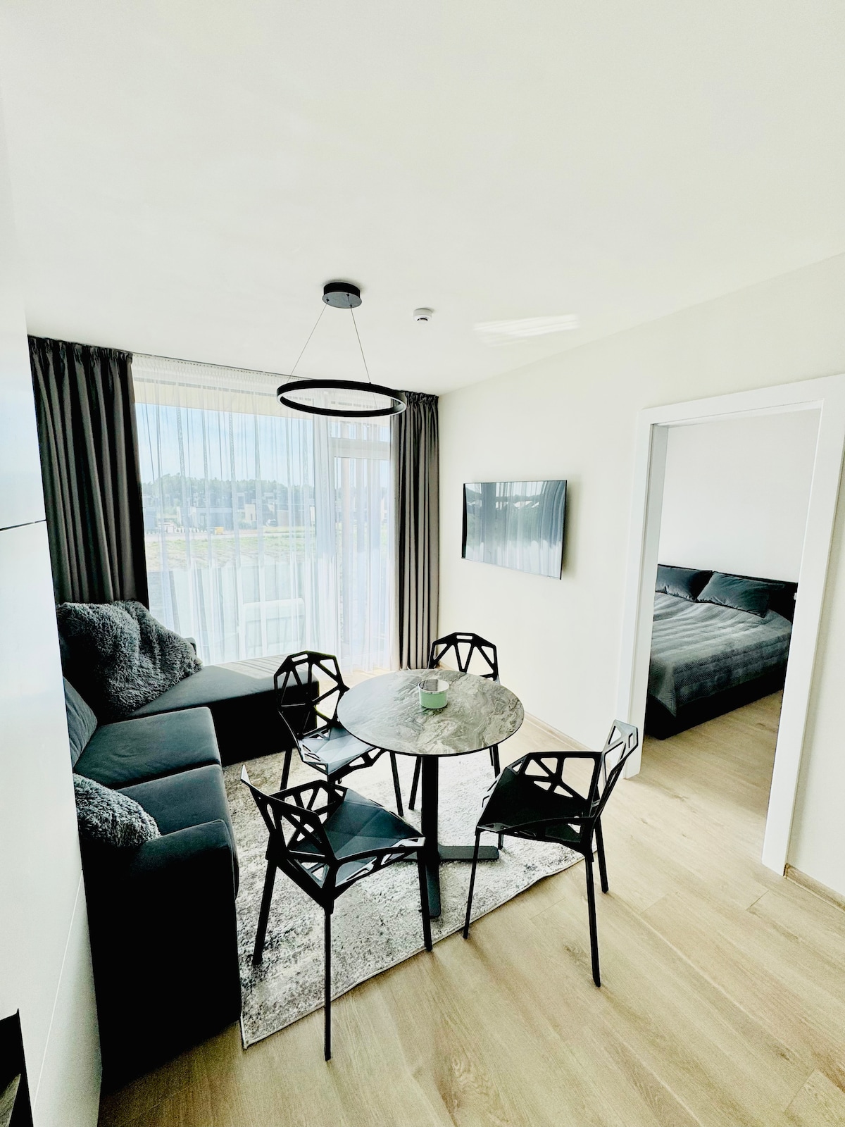 Benvenuti a Vija Home by Infinitum Sea, la tua moderna vacanza a Palanga, Kunigiškės. Situato a pochi passi dalla spiaggia e a pochi minuti dall'aeroporto di Palanga, il nostro elegante appartamento con 2 camere da letto offre tutto il necessario per un soggiorno confortevole e rilassante in riva al mare. Goditi la piscina a sfioro, la piscina riscaldata con getti subacquei, un bicchiere di vino sul balcone mentre guardi l'alba. Nelle serate del fine settimana, goditi film per famiglie ed eventi sportivi dal vivo su un grande schermo a bordo piscina. Extra: 40 € - spese di pulizia